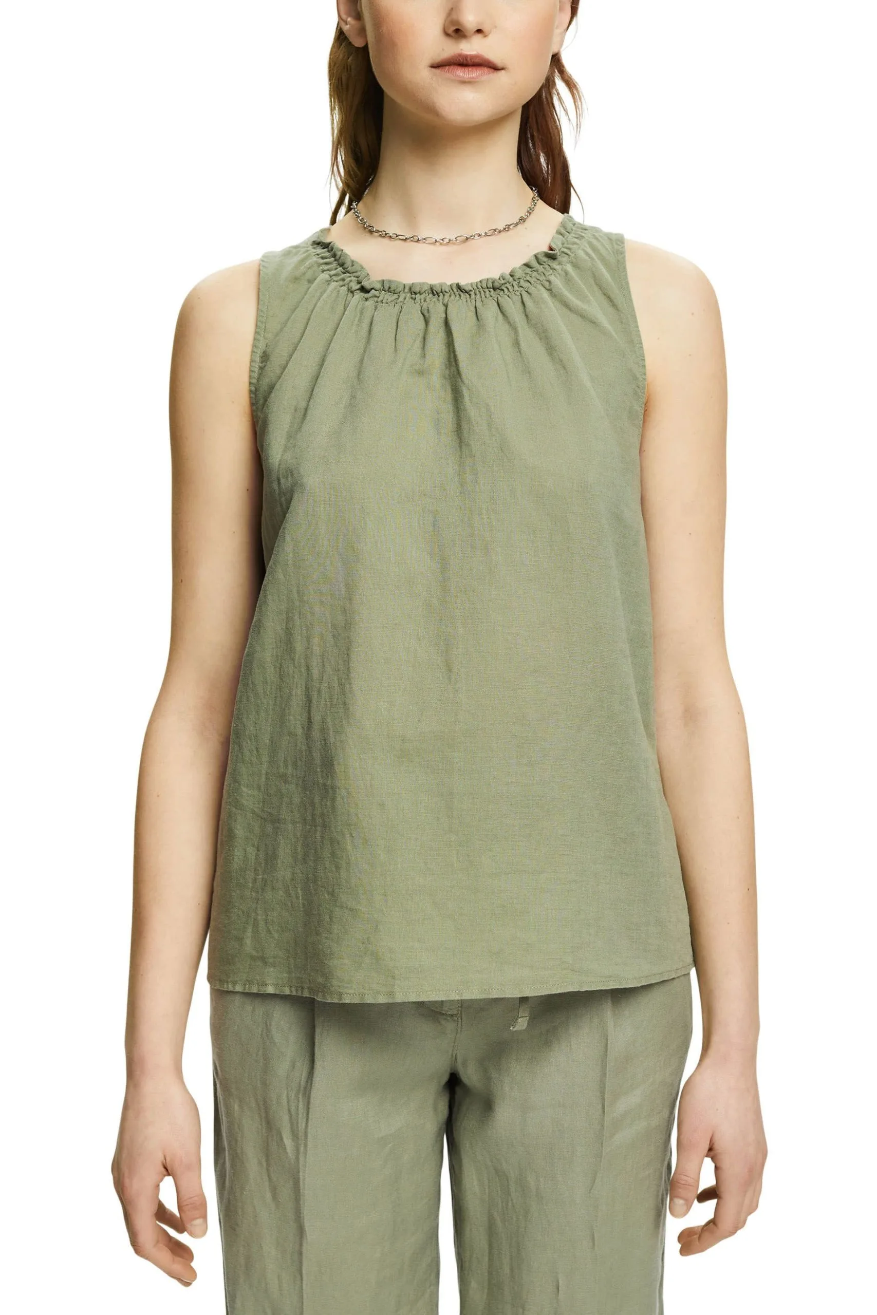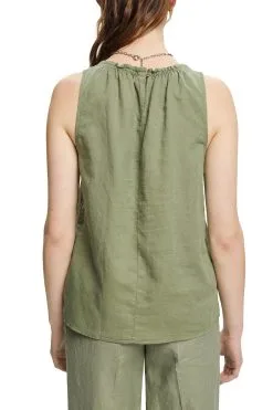 Edc By Esprit Ärmellos Bluse Einem Leinenmix Light Khaki