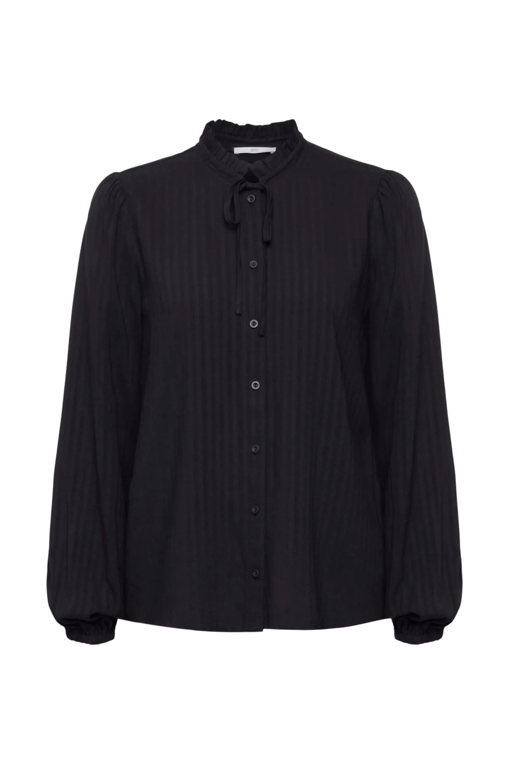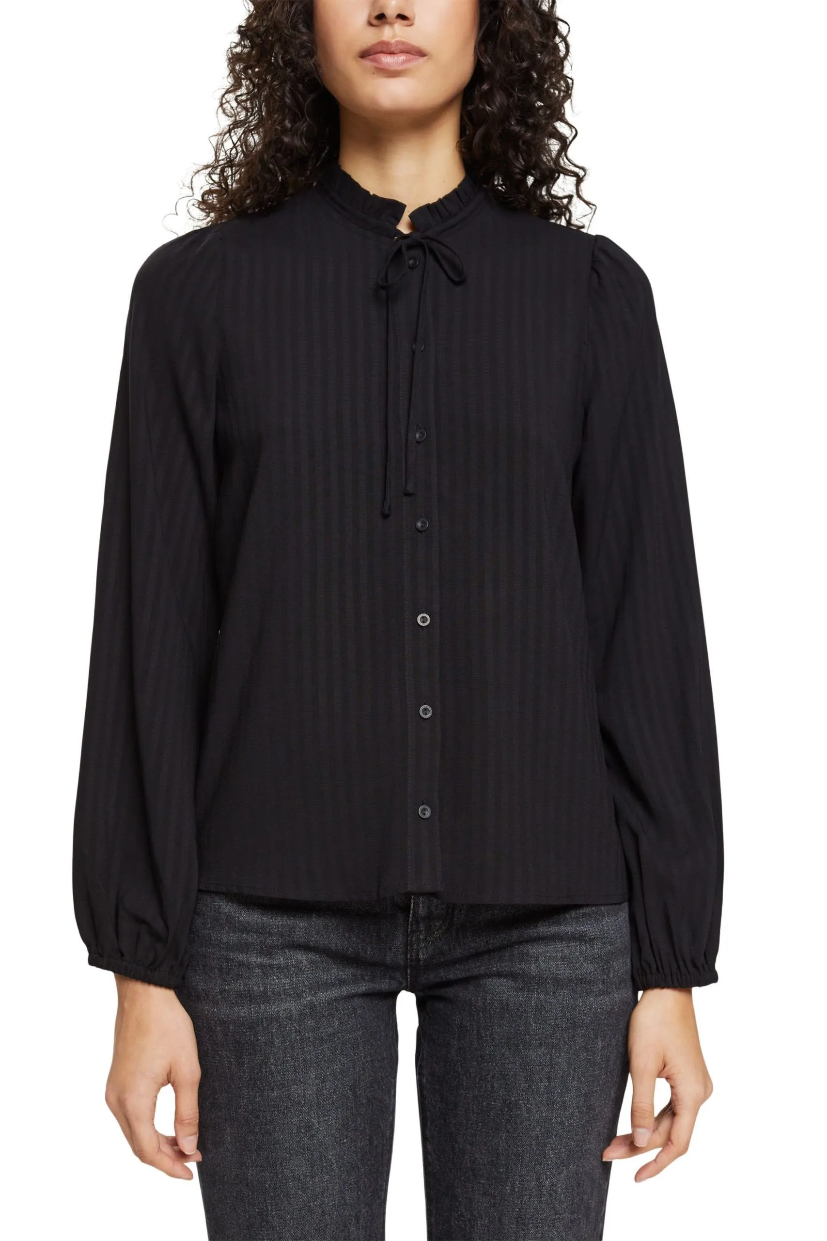 Edc By Esprit Bluse Mit Gekräuseltem Kragen Black