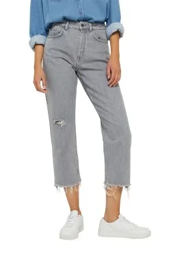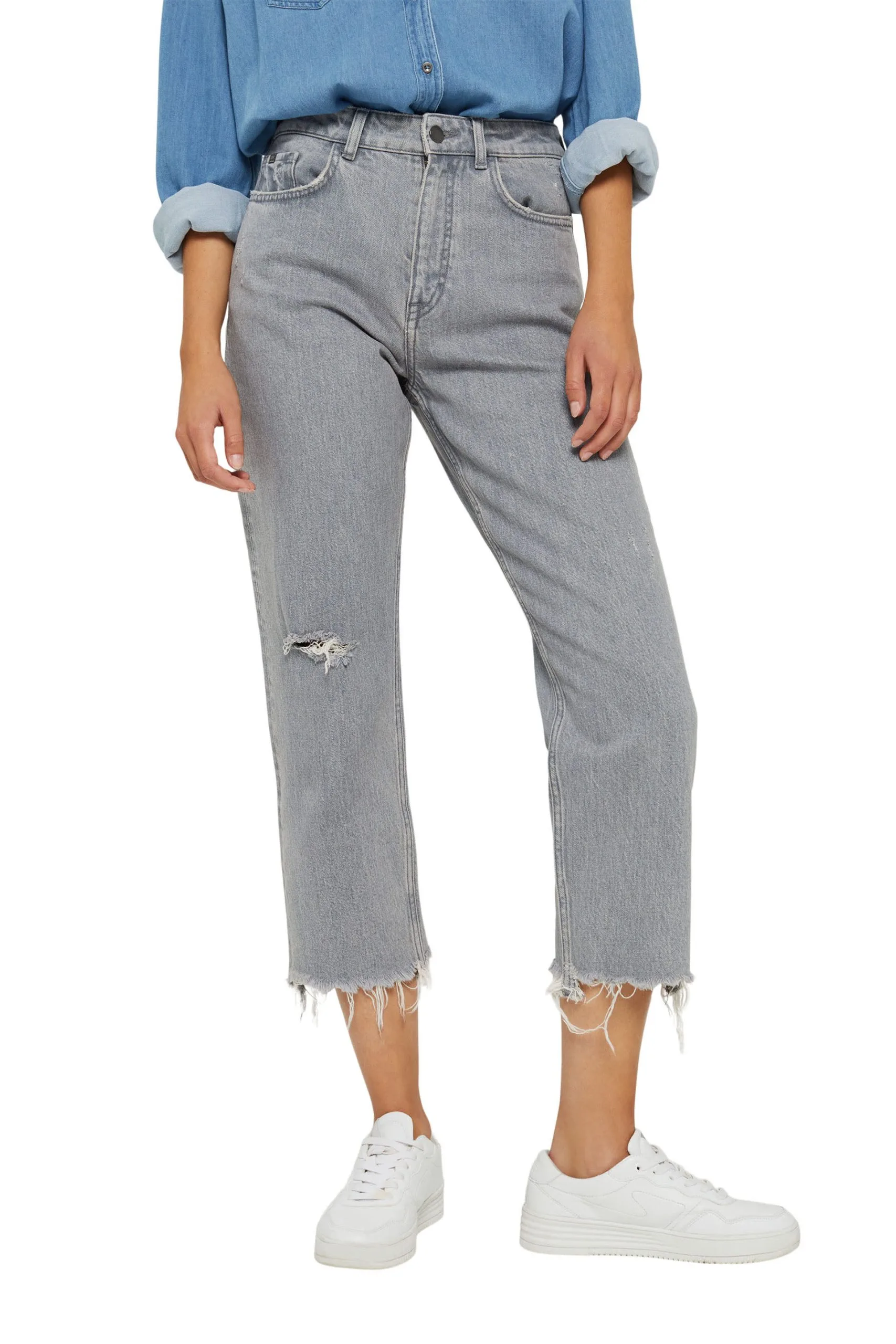Edc By Esprit Cropped Destroyed-Jeans Grey Medium Wash