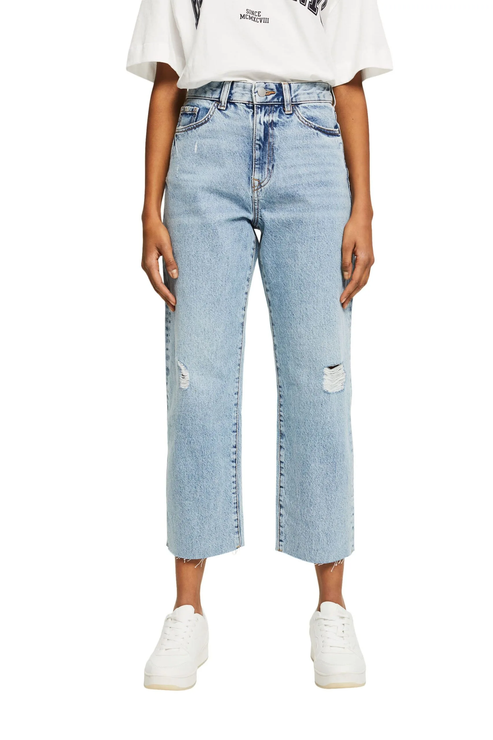 Edc By Esprit Destroyed-Jeans Mit Geradem Bein Blue Light Wash