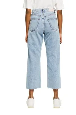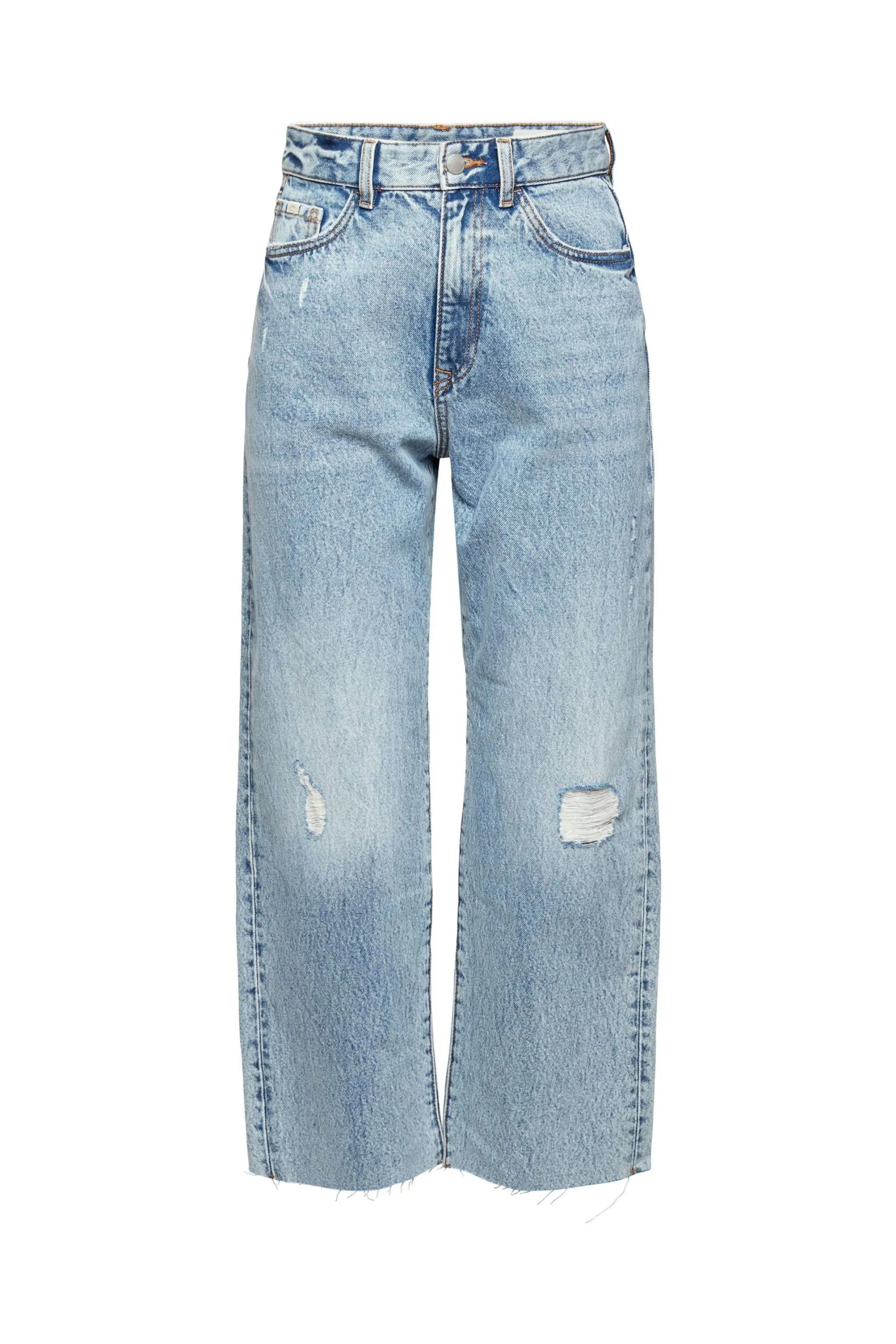 * Denim aus recycelter Baumwolle * Denimstärke: schwer * Bund mit Schlaufen, Knopf und Reißverschluss * Klassischer 5 Pocket Style * Lässige Destroyed-Effekte * Offener, leicht ausgefranster Saum * Gerades, verkürztes Bein Pflegehinweise: 40°C Buntwäsche, Nicht bleichen, Schonende Trocknung, Nicht heiß bügeln, Nicht trockenreinigen