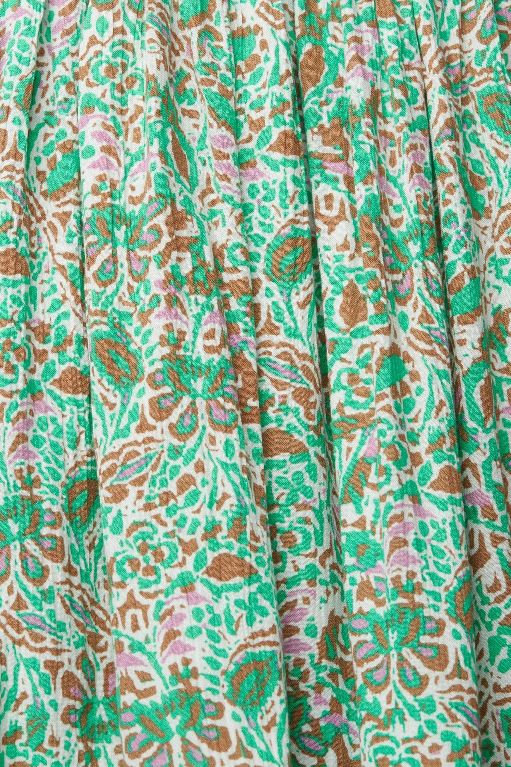 * Fließender Webstoff aus 100% LENZING™ ECOVERO™ * LENZING™ ECOVERO™: Viskose-Fasern, die aus nachhaltigem Holz und Zellstoff gewonnen werden und aus zertifizierten und kontrollierten Quellen stammen * Allover gemustert * Rundhalsausschnitt mit Rüschenkante und geknöpftem Keyhole im Nacken * Rüschenkante an den Ärmelenden * Elastisch gesmoktes Oberteil * Schwingender Rock mit Volantsaum * Minilänge Pflegehinweise: 30°C Pflegeleicht, Nicht bleichen, Nicht im Wäschetrockner trocknen, Nicht bügeln, Nicht trockenreinigen