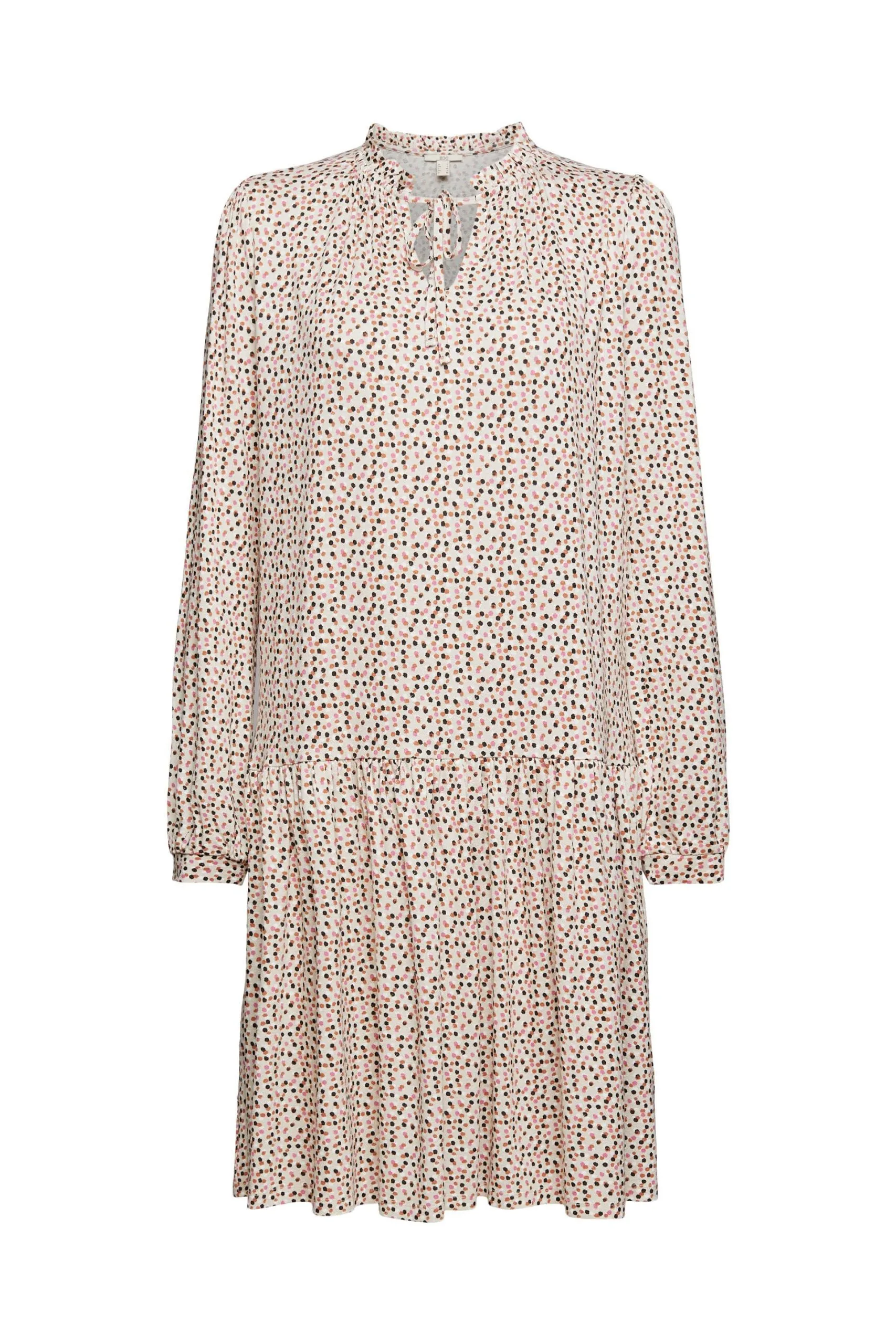 * Jersey aus nachhaltigen Viskose-Fasern und Stretchkomfort * LENZING™ ECOVERO™: Viskose-Fasern, die aus nachhaltigem Holz und Zellstoff gewonnen werden und aus zertifizierten und kontrollierten Quellen stammen * Kelchausschnitt mit fixiertem Bindebändchen und Rüschen-Details * Lange Ärmel mit Elastikbündchen * Locker umspielende A-Linie mit Volantsaum * Knielang Pflegehinweise: 30°C Pflegeleicht, Nicht bleichen, Nicht im Wäschetrockner trocknen, Mäßig heiß bügeln, Nicht trockenreinigen