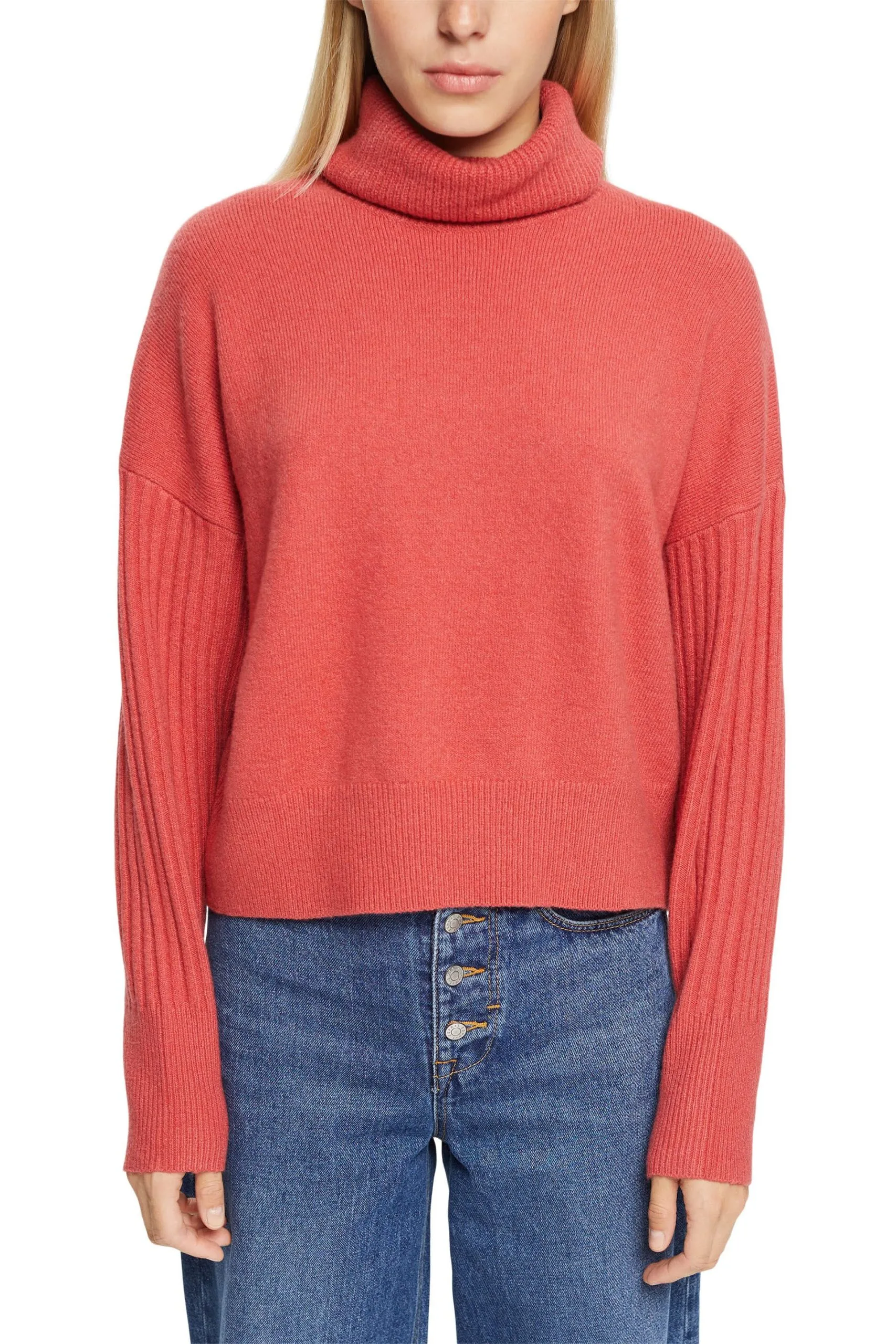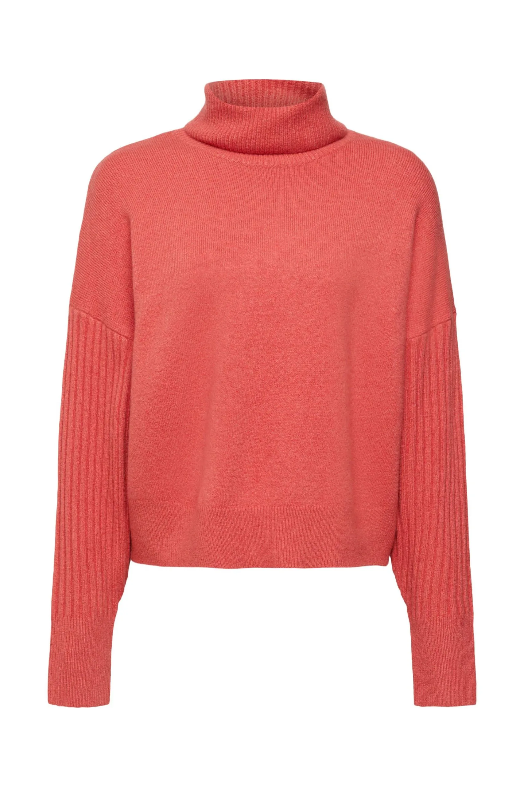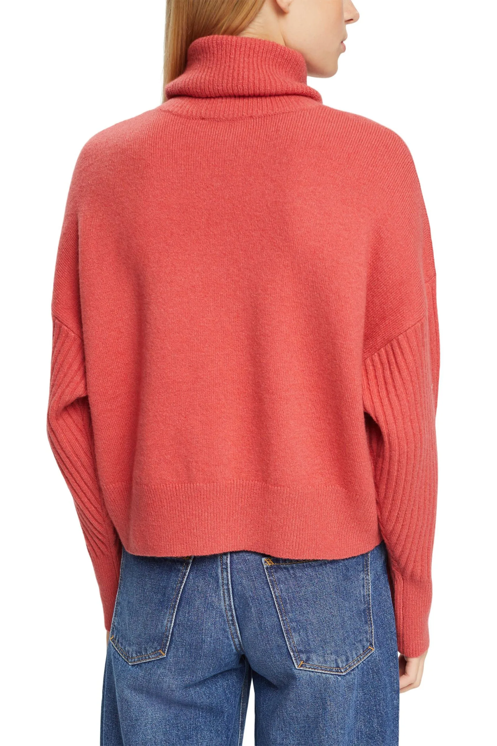 * Weiches Strickmaterial aus pflegeleichtem Garnmix mit Woll- und Baumwollanteil * Gerippter Rollkragen * Überschnittene Schultern mit gerippten Ärmeln * Kastiger Schnitt Pflegehinweise: 30°C Feinwäsche/Wollwäsche, Nicht bleichen, Nicht im Wäschetrockner trocknen, Nicht heiß bügeln, Nicht trockenreinigen