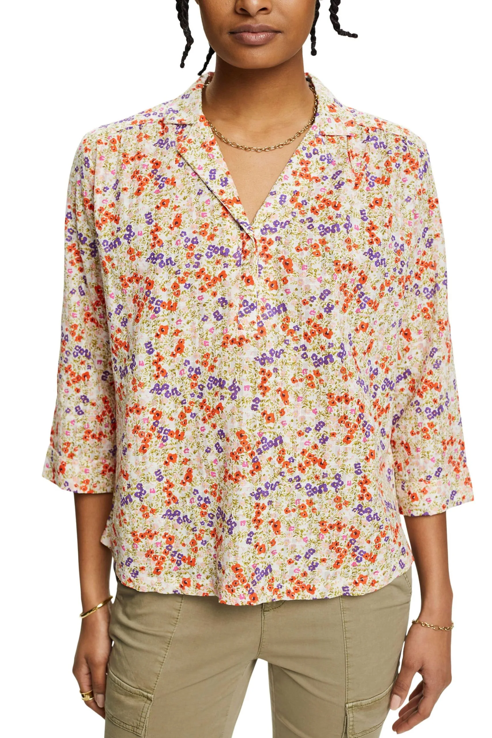 ESPRIT Baumwollbluse Mit Blumen-Print Off White