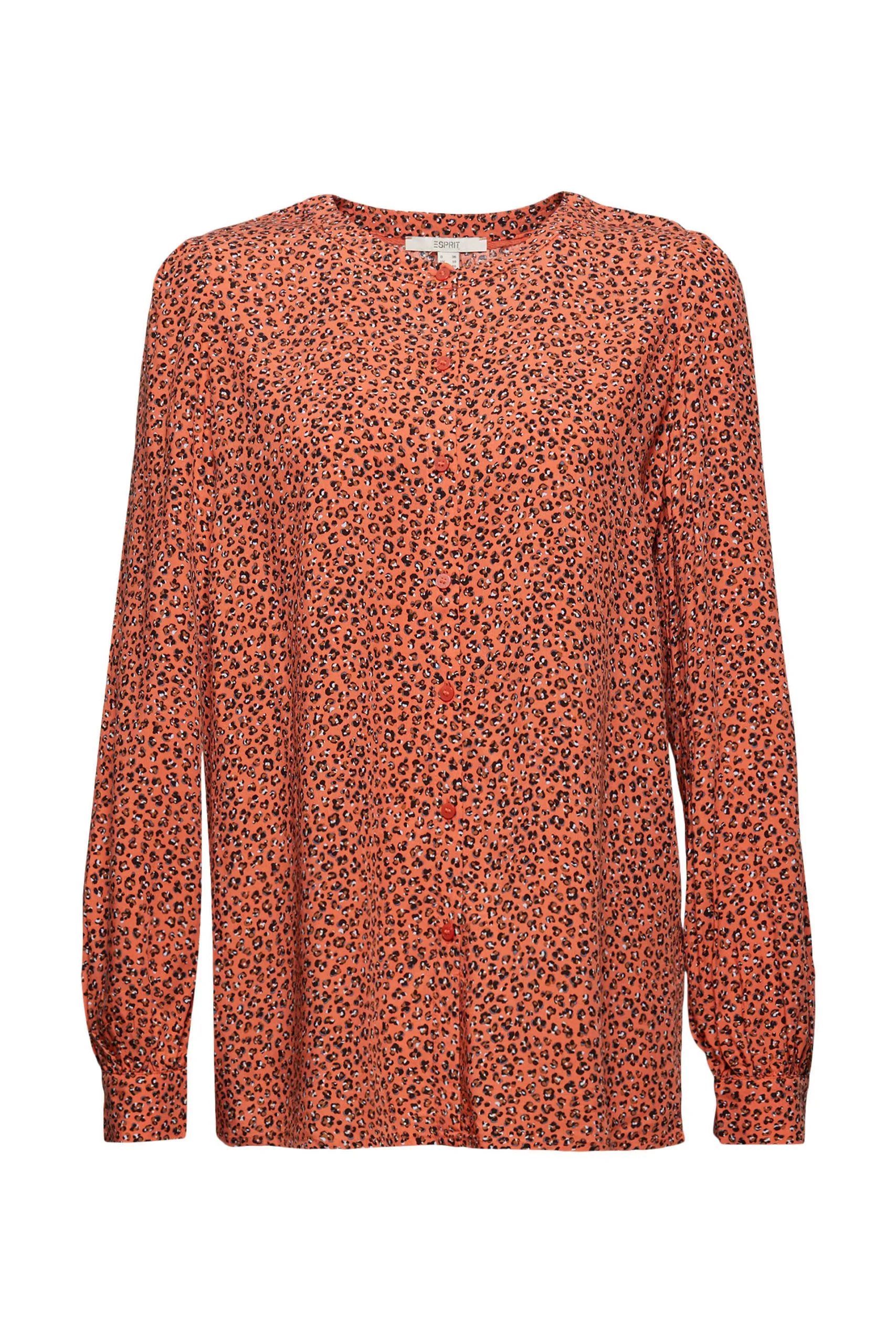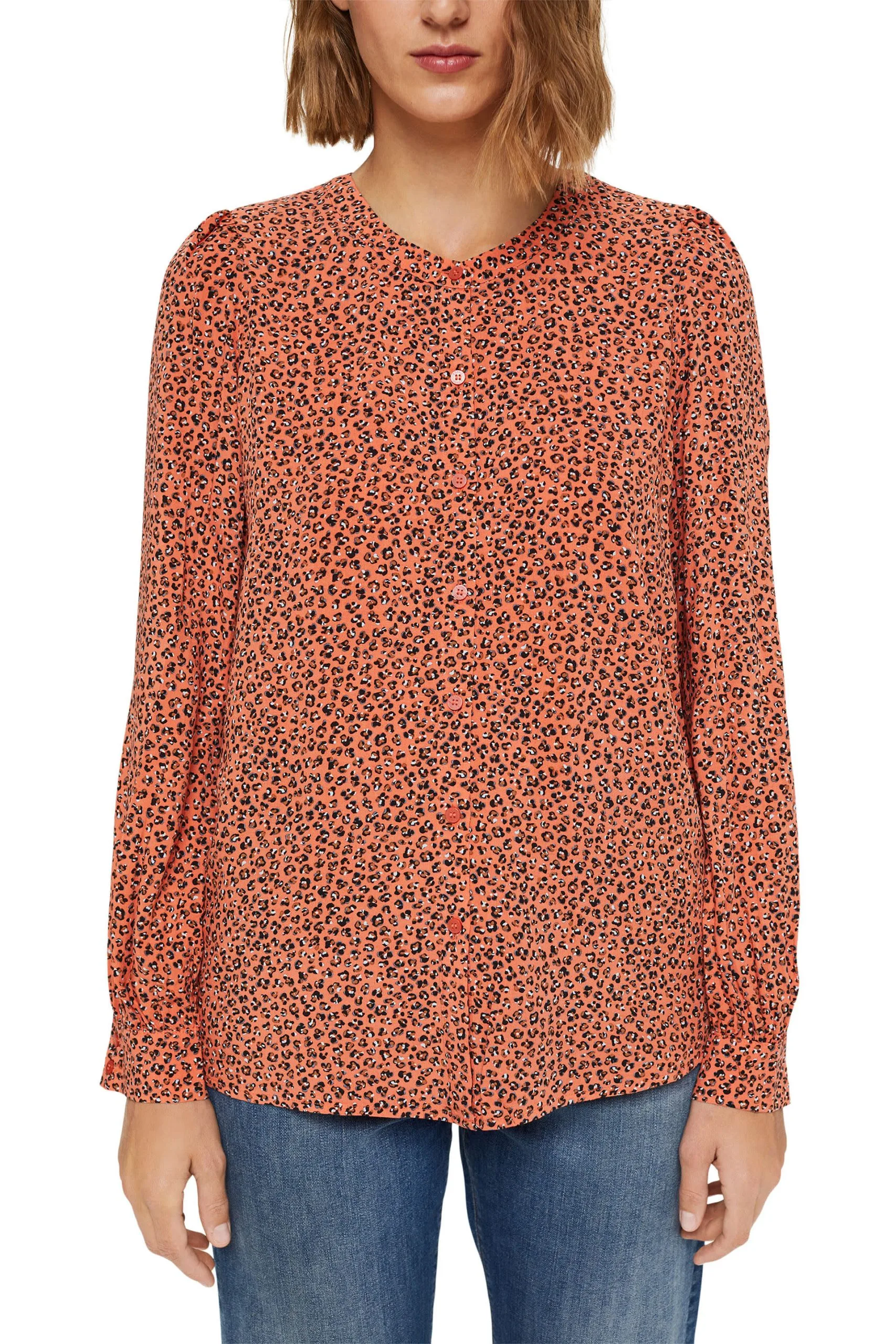 * Fließender Webstoff aus reiner LENZING™ ECOVERO™-Viskose * LENZING™ ECOVERO™: Viskose-Fasern, die aus nachhaltigem Holz und Zellstoff gewonnen werden und aus zertifizierten und kontrollierten Quellen stammen * Modisches Leomuster * Rundhals-Ausschnitt * Durchgehende Knopfleiste * Ärmel mit dezentem Puff-Effekt und Zweiknopfmanschetten * Gerade umspielender Schnitt Pflegehinweise: 30°C Pflegeleicht, Nicht bleichen, Nicht im Wäschetrockner trocknen, Mäßig heiß bügeln, Nicht trockenreinigen