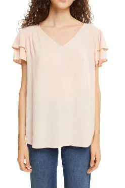 * Fließender Webstofff aus reiner Viskose mit LENZING™ ECOVERO™ * LENZING™ ECOVERO™: Viskose-Fasern, die aus nachhaltigem Holz und Zellstoff gewonnen werden und aus zertifizierten und kontrollierten Quellen stammen * Gestickte Pünktchen allover * V-Ausschnitt * Zweilagige Volantärmel * Gerade Passform Pflegehinweise: 30°C Pflegeleicht, Nicht bleichen, Nicht im Wäschetrockner trocknen, Mäßig heiß bügeln, Nicht trockenreinigen