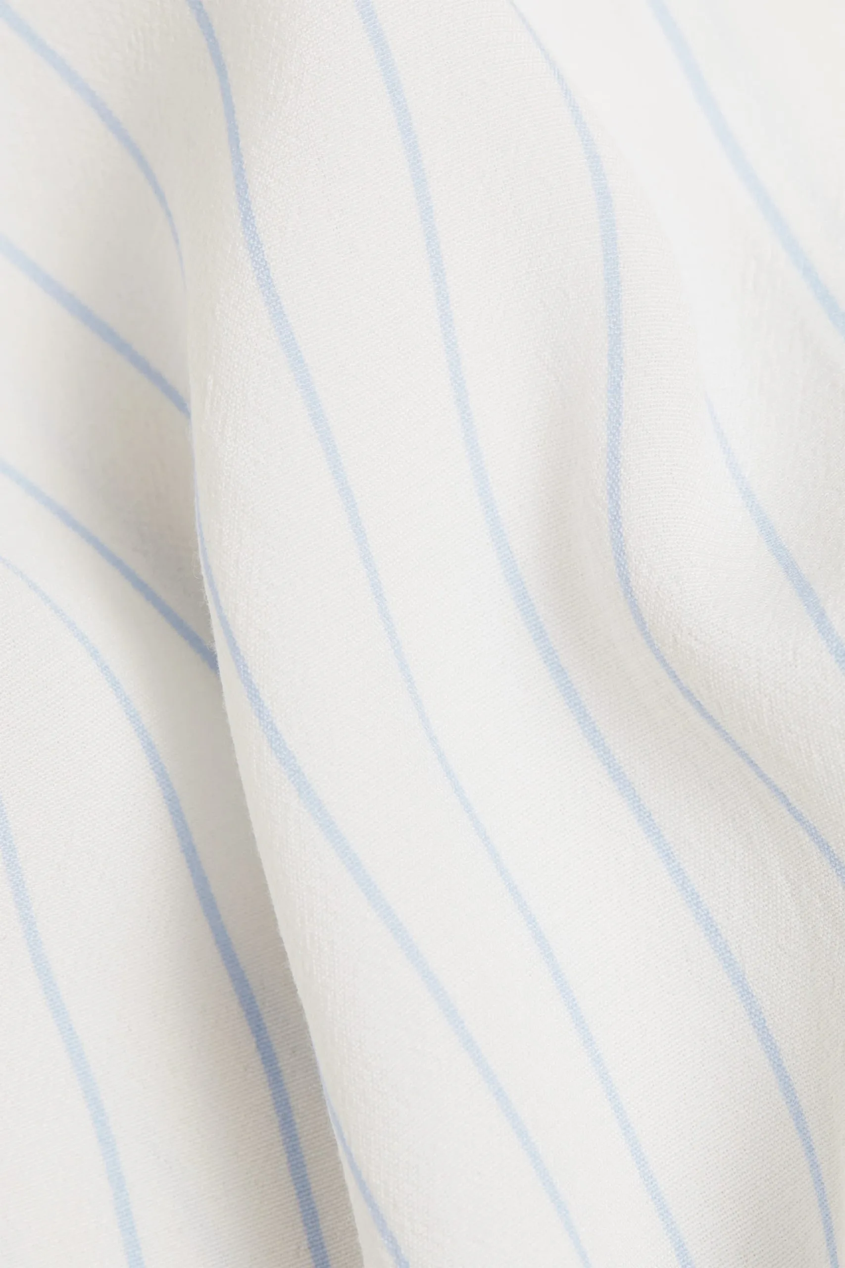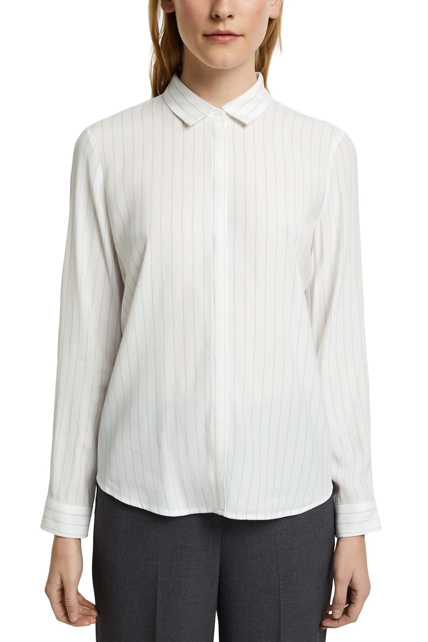 * Feiner Crêpe aus nachhaltiger LENZING™ ECOVERO™ Viskose * LENZING™ ECOVERO™: Viskose-Fasern, die aus nachhaltigem Holz und Zellstoff gewonnen werden und aus zertifizierten und kontrollierten Quellen stammen * Feine Streifen * Klasischer Kragen * Vorne mittig geknöpft Pflegehinweise: 30°C Pflegeleicht, Nicht bleichen, Nicht im Wäschetrockner trocknen, Mäßig heiß bügeln, Nicht trockenreinigen