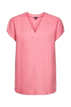 * Leichter Webstoff aus 100% Leinen * V-Ausschnitt mit breiter Blende * Kurze Ärmel mit Schlitzen * Seitlich geschlitzter Saum * Lockere Passform Pflegehinweise: 40°C Pflegeleicht, Nicht bleichen, Nicht im Wäschetrockner trocknen, Mäßig heiß bügeln, Nicht trockenreinigen