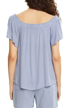 ESPRIT Crinkle-Bluse Mit Carmen-Ausschnitt Light Blue Lavender