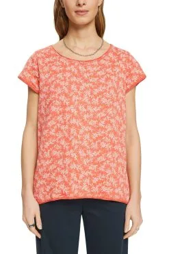ESPRIT Florales T-Shirt Mit Rollkanten Orange Red