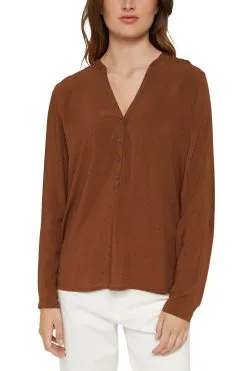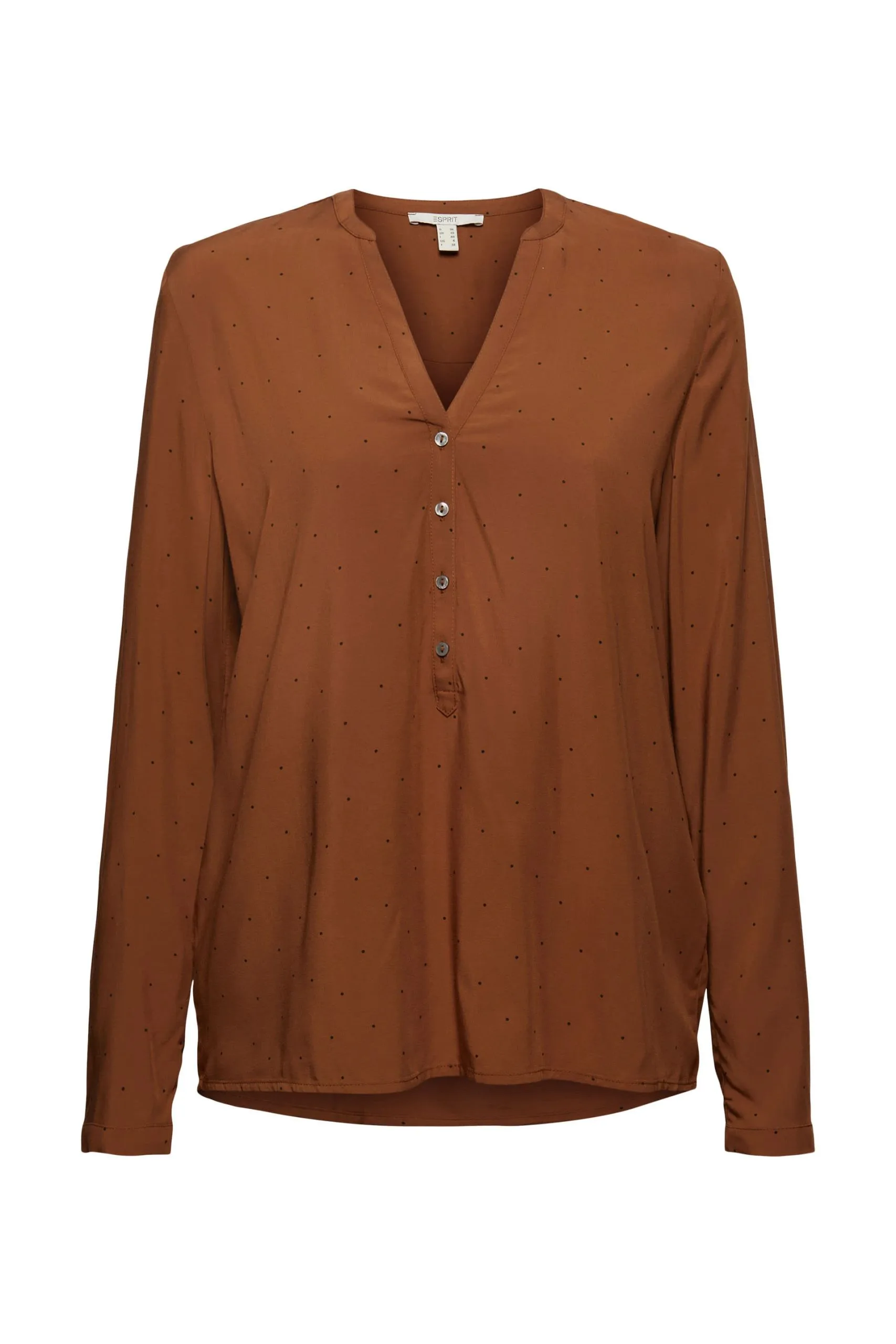 ESPRIT Gepunktete Henley-Bluse Toffee