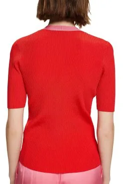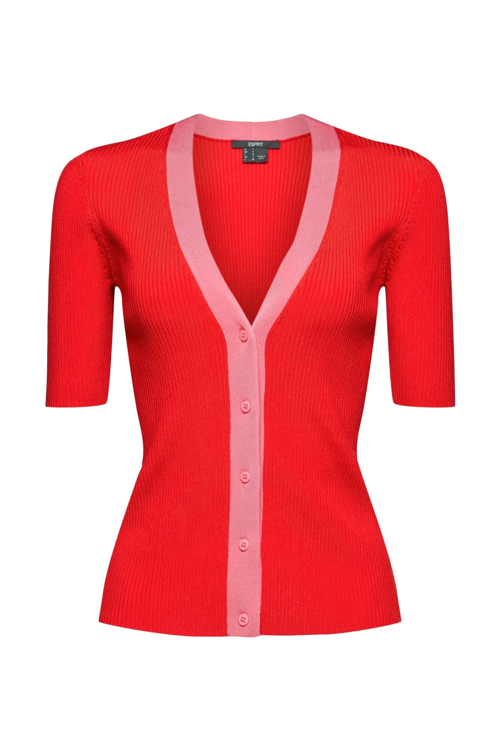 ESPRIT Gerippter Cardigan Mit T-Shirt-Ärmeln Red 2