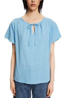 * JerseyBaumwoll-Mix mit Leinen * Leicht transparente Querstreifen allover * Kelchausschnitt mit Binde-Detail * Kurze Raglanärmel * Lockere Passform Pflegehinweise: 30°C Pflegeleicht, Nicht bleichen, Nicht im Wäschetrockner trocknen, Mäßig heiß bügeln, Nicht trockenreinigen