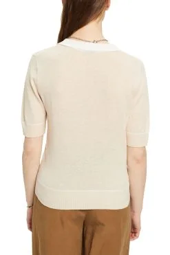 ESPRIT Gewebter V-Ausschnitt-Pullover Mit Anteil Sand