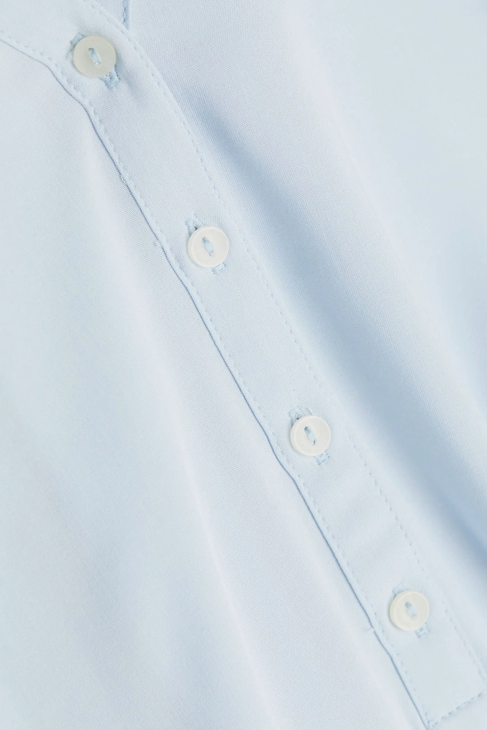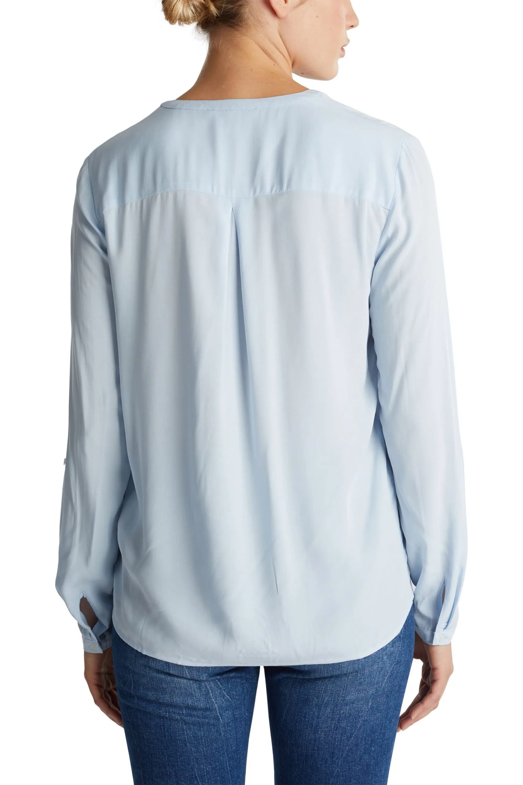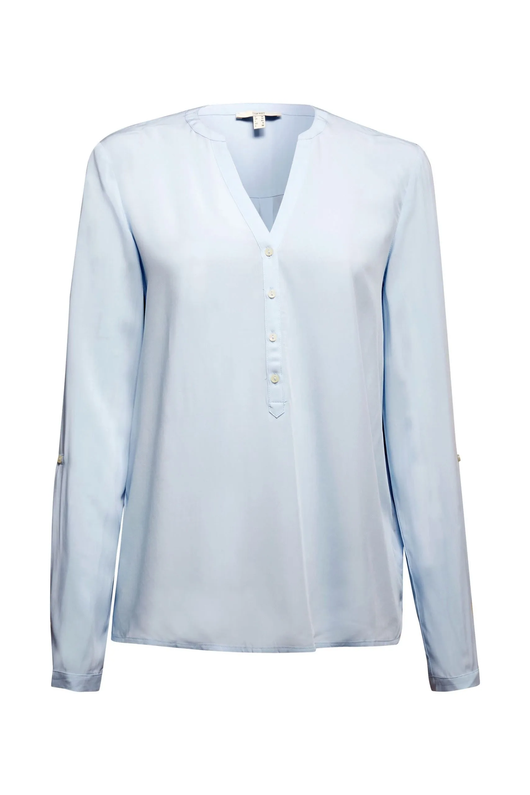 * Fließender, leichter Stoff aus trageangenehmer LENZING™ ECOVERO™-Viskose * LENZING™ ECOVERO™: Viskose-Fasern, die aus nachhaltigem Holz und Zellstoff gewonnen werden und aus zertifizierten und kontrollierten Quellen stammen * Großer Henley-Ausschnitt mit Knopfleiste * Lange, variabel tragbare Turn-Up-Ärmel * Lockerer Schnitt * Gerundeter Saum Pflegehinweise: 30°C Pflegeleicht, Nicht bleichen, Nicht im Wäschetrockner trocknen, Mäßig heiß bügeln, Nicht trockenreinigen
