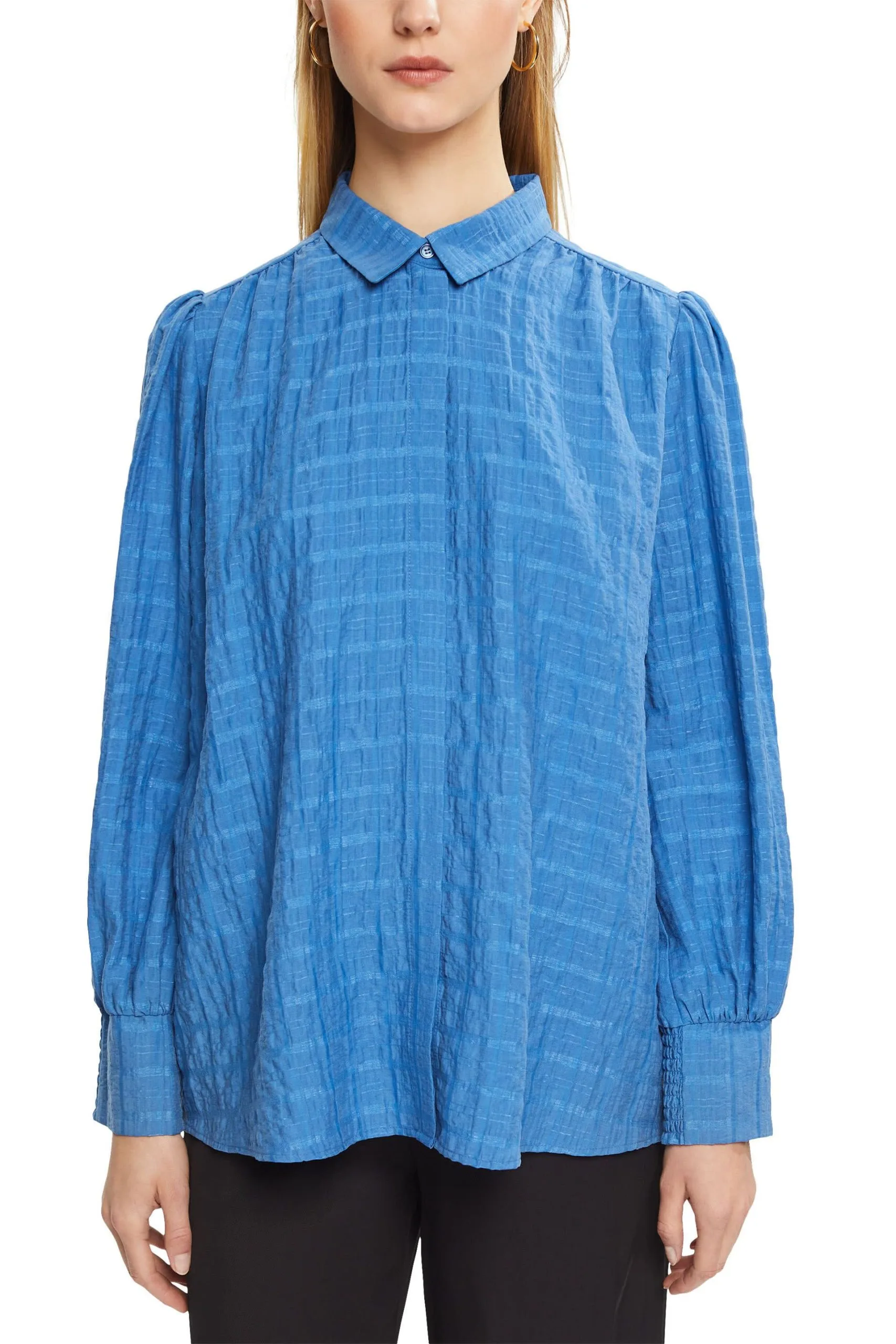ESPRIT Karierte Bluse In Crinkle-Optik Blue