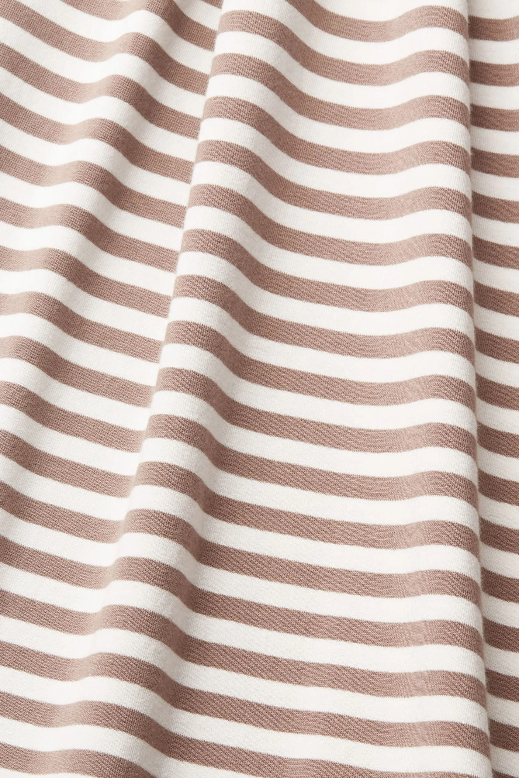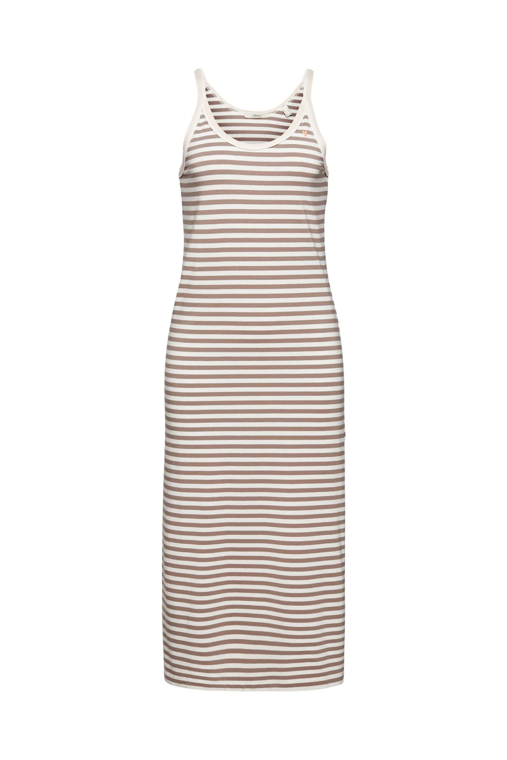 * JerseyBaumwoll-Mix mit Modal und Stretchkomfort * Allover Querstreifenmuster * Kontrastfarbene Blende an Rundhals- und Ärmelausschnitt * Kleine Herzchen-Stickerei über der linken Brust * Zwei hohe, seitliche Saumschlitze * Midilänge Pflegehinweise: 30°C Pflegeleicht, Nicht bleichen, Nicht im Wäschetrockner trocknen, Mäßig heiß bügeln, Nicht trockenreinigen