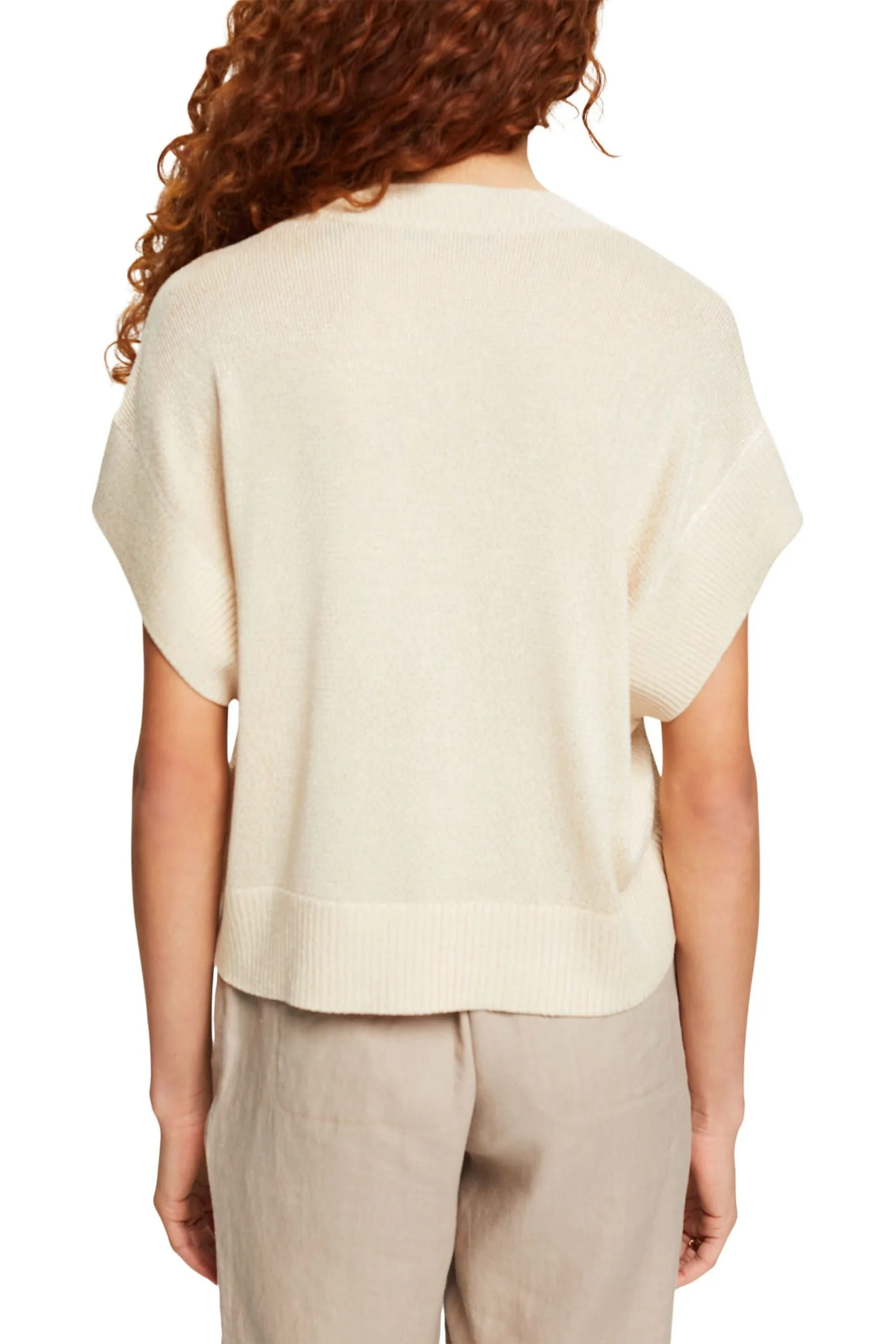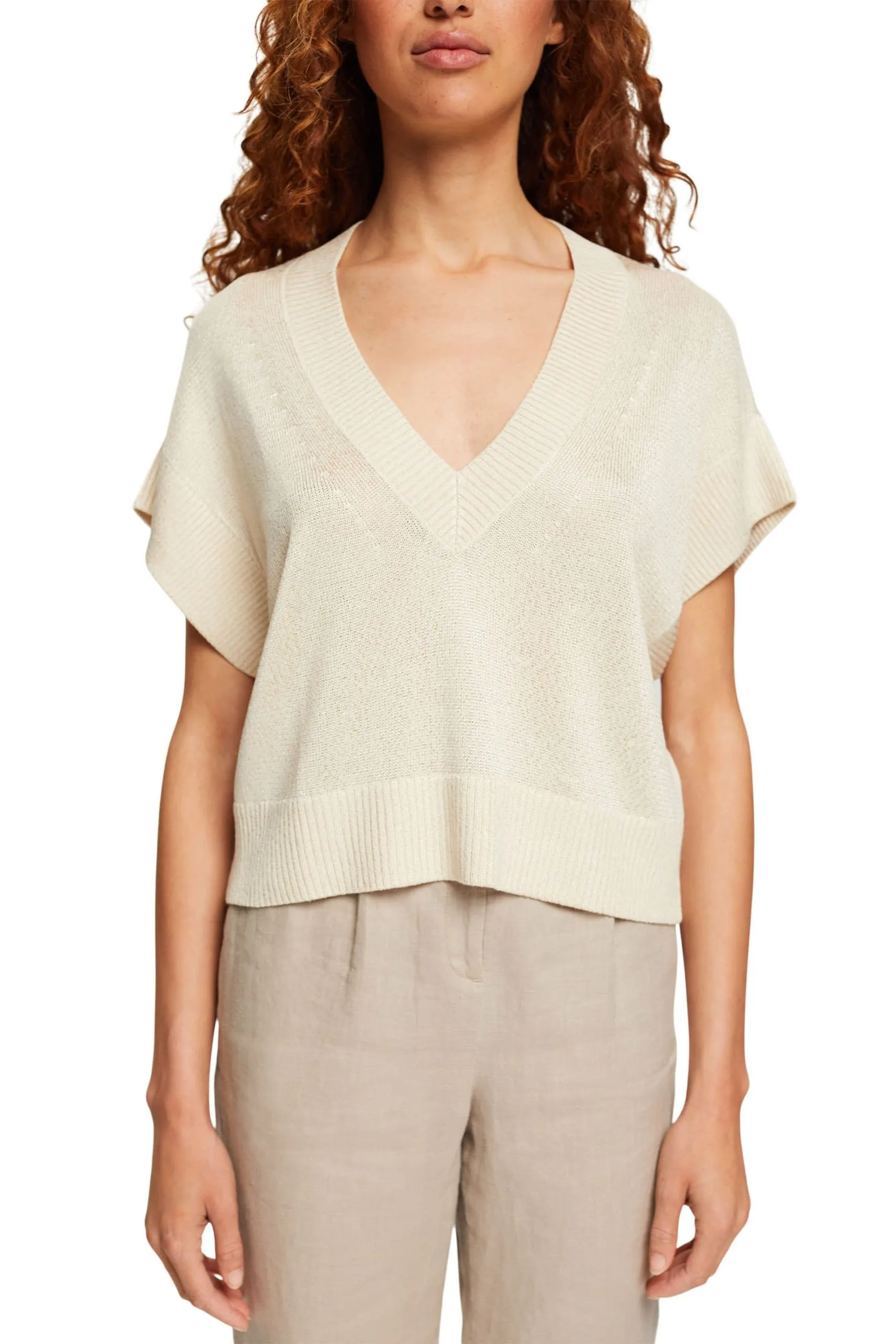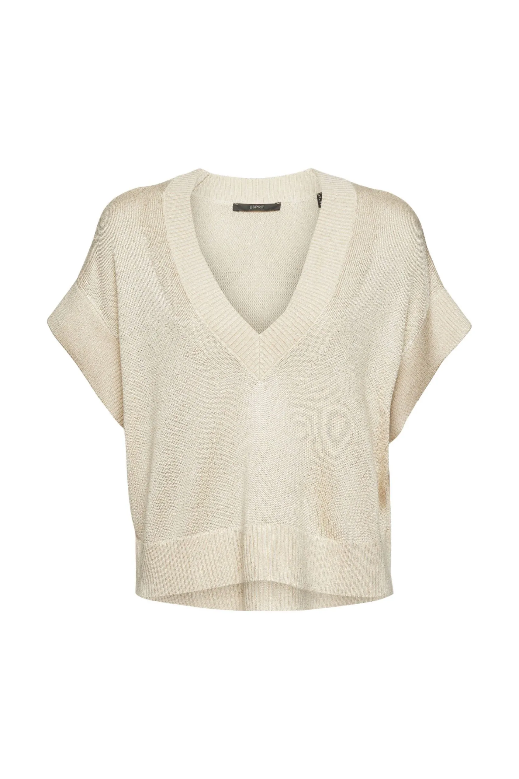 * Weicher Strick aus Viskose-Mix * Glitzer-Effekt * Tiefer V-Ausschnitt * Kurze, weite Ärmel * Gerippte Abschlussbündchen * Lockere Passform Pflegehinweise: 30°C Pflegeleicht, Nicht bleichen, Nicht im Wäschetrockner trocknen, Mäßig heiß bügeln, Nicht trockenreinigen