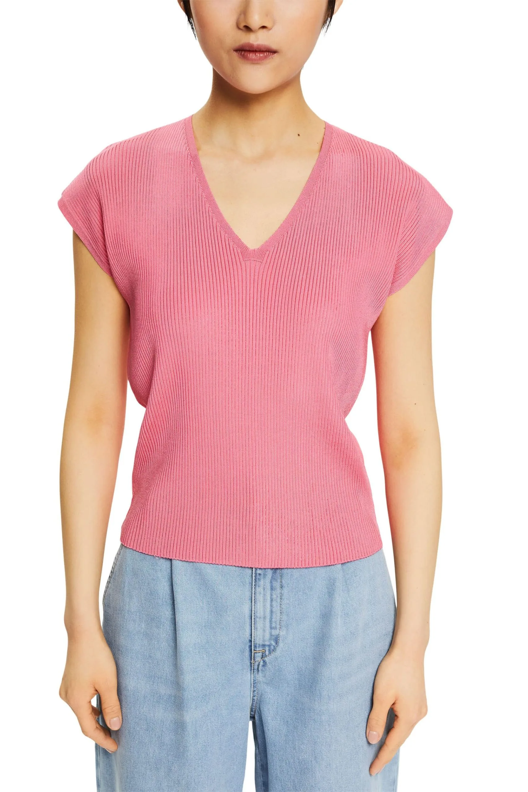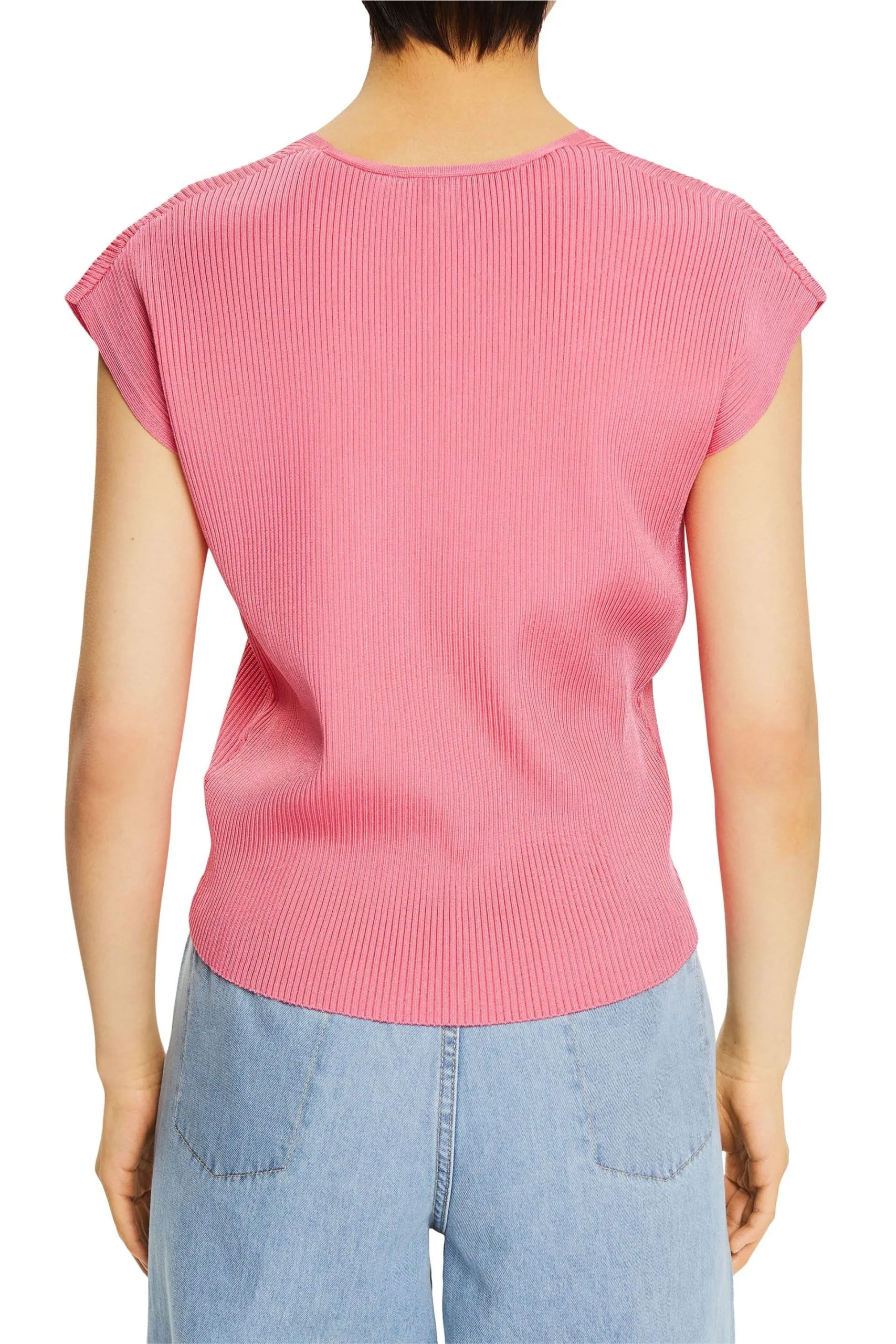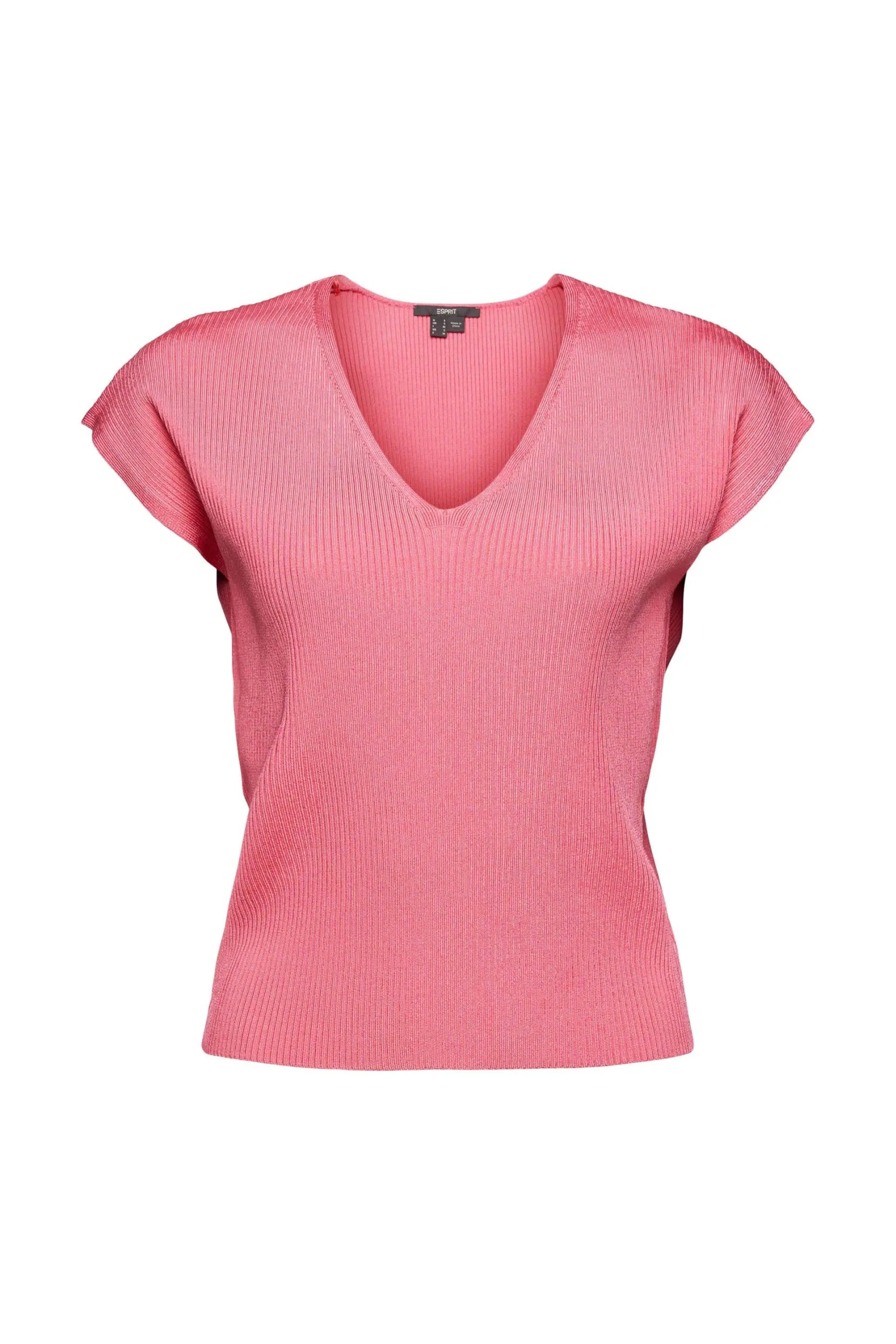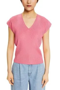 ESPRIT Kurzärmeliger Pullover In Ripp-Optik Pink Fuchsia