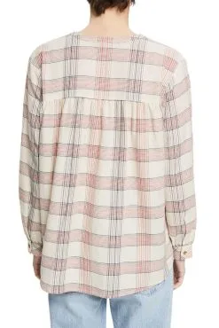 Webstoff aus BCI Baumwolle und Viskose BCI (Better Cotton Initiative): Programm um die nachhaltige Produktion von Baumwolle zu foerdern und verbesserte Arbeitsbedingungen zu schaffen. Karomuster Kelchausschnitt mit halblanger Knopfleiste Lange Ärmel mit geknoepften Manschetten Lockere Passform