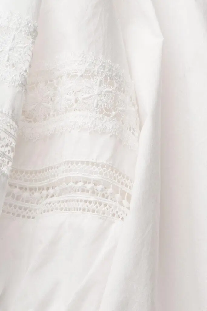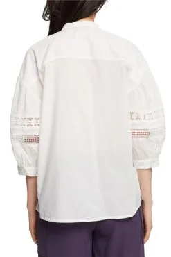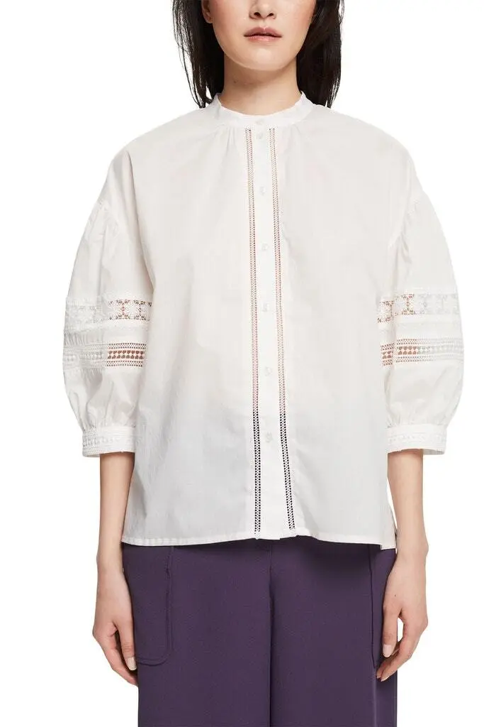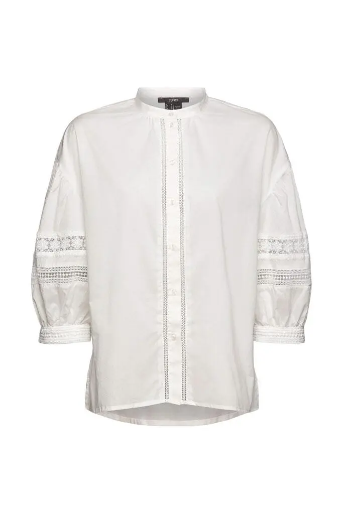 Leichter Webstoff aus reiner Baumwolle Stegkragen mit Knopf Spitzenborduere entlang der Knopfleiste Überschnittene Schultern Weite Ärmel mit Spitzen-Details (Laenge: ca. 58 cm inkl. Schulterpartie) Geknoepfte Manschetten Lockere Passform