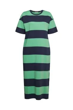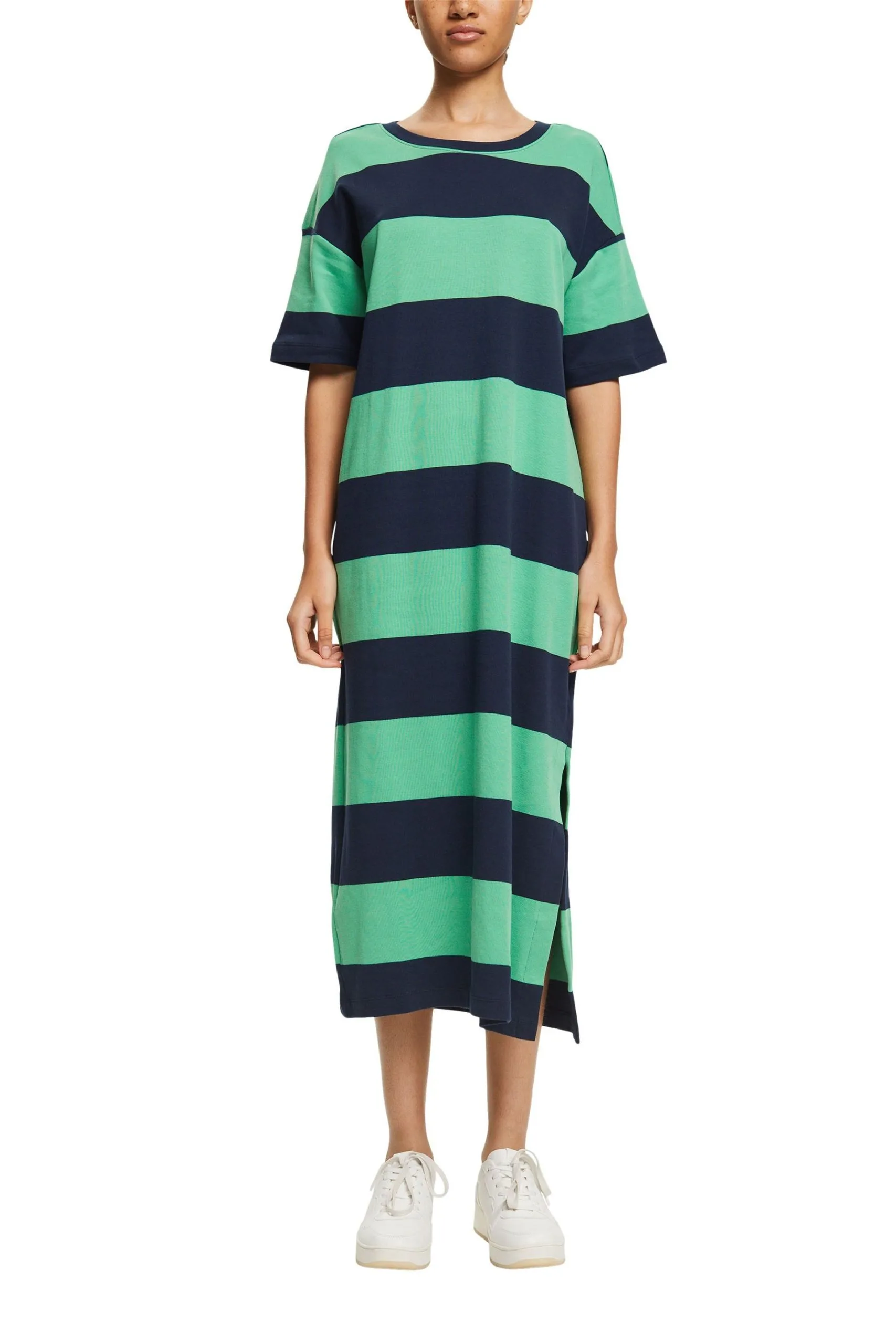 * Jerseyreiner Baumwolle * Allover Querstreifenmuster * Rundhalsausschnitt * Überschnittene Schultern * Ein hoher seitlicher Saumschlitz * Oversized geschnitten * Maxilänge Pflegehinweise: 40°C Buntwäsche, Nicht bleichen, Nicht im Wäschetrockner trocknen, Mäßig heiß bügeln, Nicht trockenreinigen