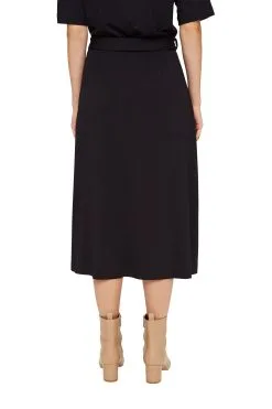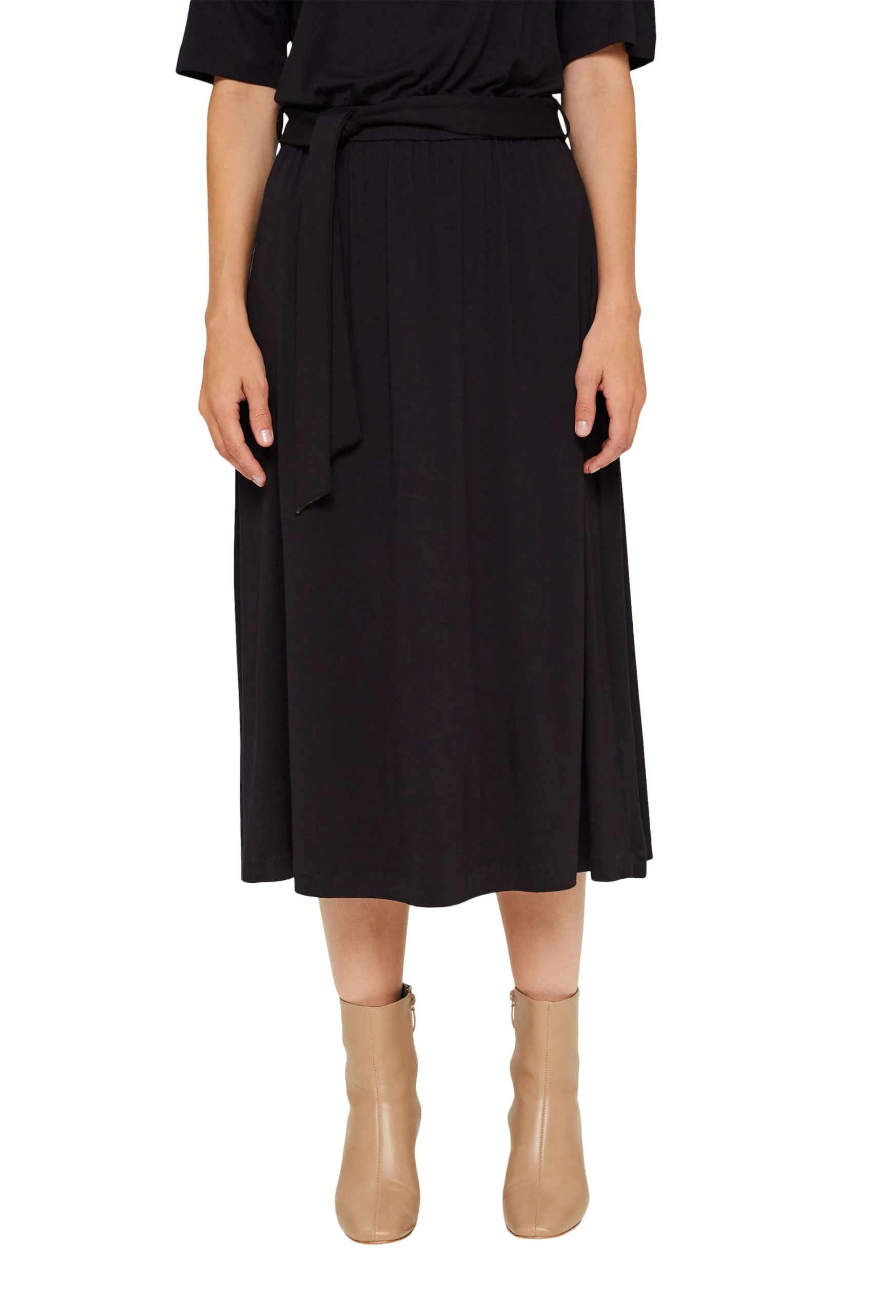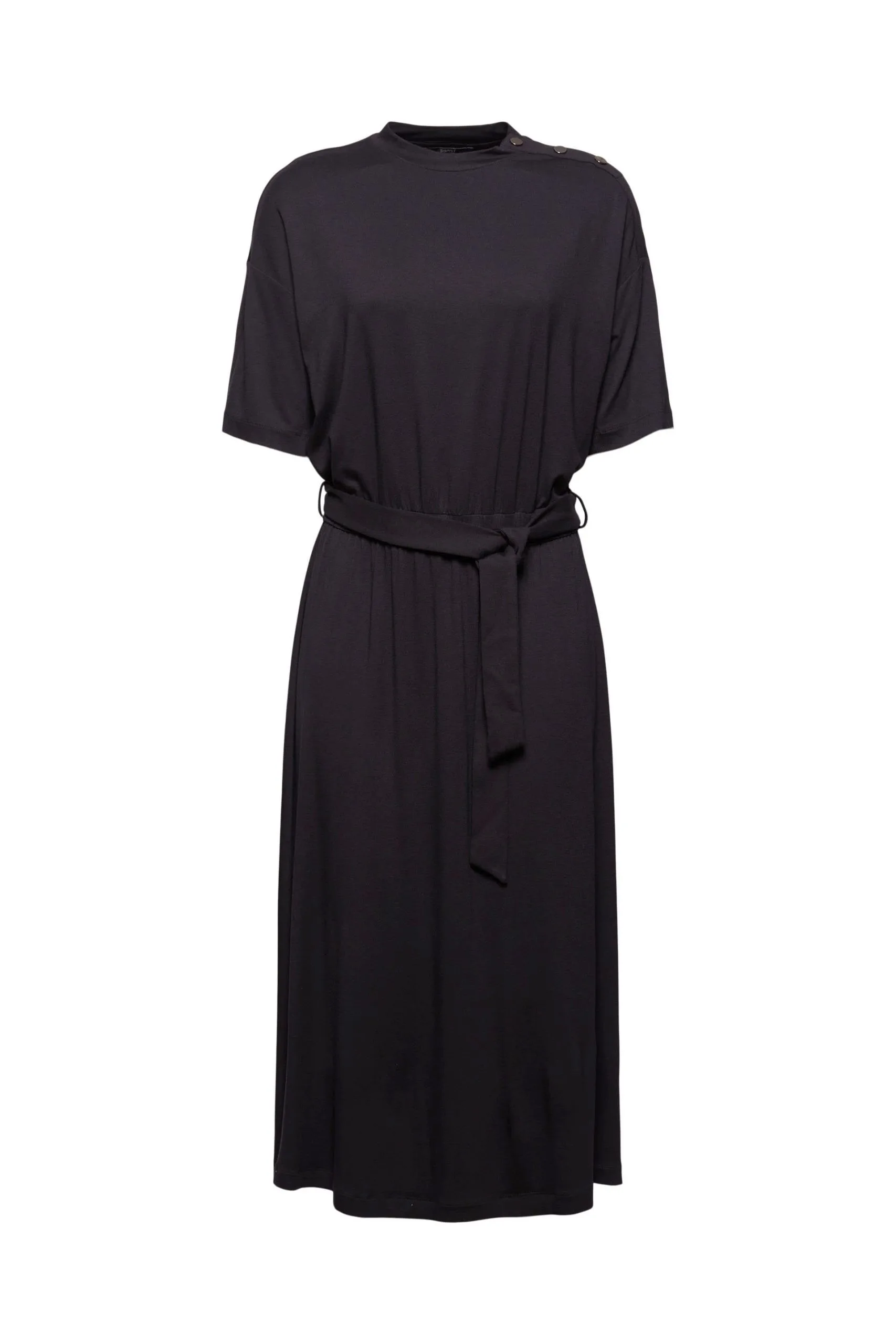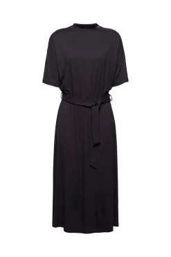 * Weich fallender JerseyLENZING™ ECOVERO™-Viskose mit Stretchkomfort * LENZING™ ECOVERO™: Viskose-Fasern, die aus nachhaltigem Holz und Zellstoff gewonnen werden und aus zertifizierten und kontrollierten Quellen stammen * Stehkragen * Zierende Druckknopfleiste aus glänzendem Metall auf der linken Schulter * Elastische Taille * Bindegürtel * Ausgestelltes Rockteil in Midilänge Pflegehinweise: 30°C Pflegeleicht, Nicht bleichen, Nicht im Wäschetrockner trocknen, Mäßig heiß bügeln, Nicht trockenreinigen