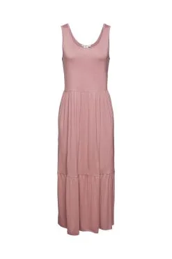 * Weicher JerseyLENZING™ ECOVERO™ mit Stretchkomfort * LENZING™ ECOVERO™: Viskose-Fasern, die aus nachhaltigem Holz und Zellstoff gewonnen werden und aus zertifizierten und kontrollierten Quellen stammen * Tiefer Rundhalsausschnitt * Passe auf Taillenhöhe * Ausgestellter Volantsaum * Midilänge * LENZING™ ECOVERO™ sind Markenzeichen der Lenzing AG Pflegehinweise: 30°C Pflegeleicht, Nicht bleichen, Nicht im Wäschetrockner trocknen, Mäßig heiß bügeln, Nicht trockenreinigen