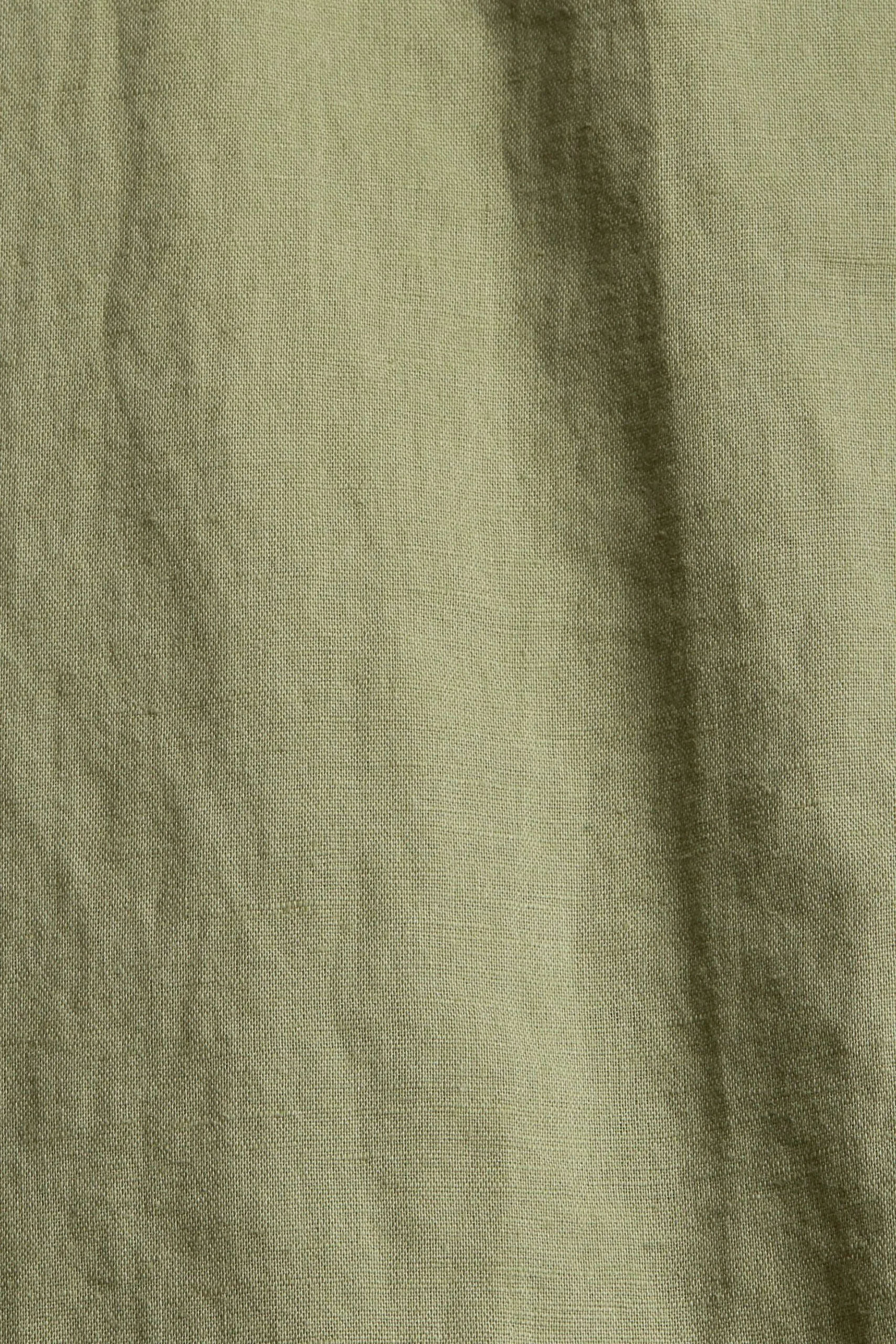 * Luftiger, fein strukturierter Leinen-Baumwoll-Mix * BCI (Better Cotton Initiative): Programm um die nachhaltige Produktion von Baumwolle zu fördern und verbesserte Arbeitsbedingungen zu schaffen. * Klassischer Umlegekragen * Verdeckte Knopfleiste * Geknöpfte Manschetten * Gerundeter Saum * Oversize Schnitt Pflegehinweise: 40°C Pflegeleicht, Nicht bleichen, Nicht im Wäschetrockner trocknen, Mäßig heiß bügeln, Nicht trockenreinigen