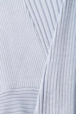 Gerippter Feintrick aus recyceltem Material-Mix mit Viskose Offener Schalkragen Laessiger Zipfelsaum