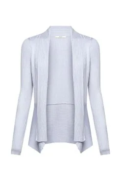 Gerippter Feintrick aus recyceltem Material-Mix mit Viskose Offener Schalkragen Laessiger Zipfelsaum