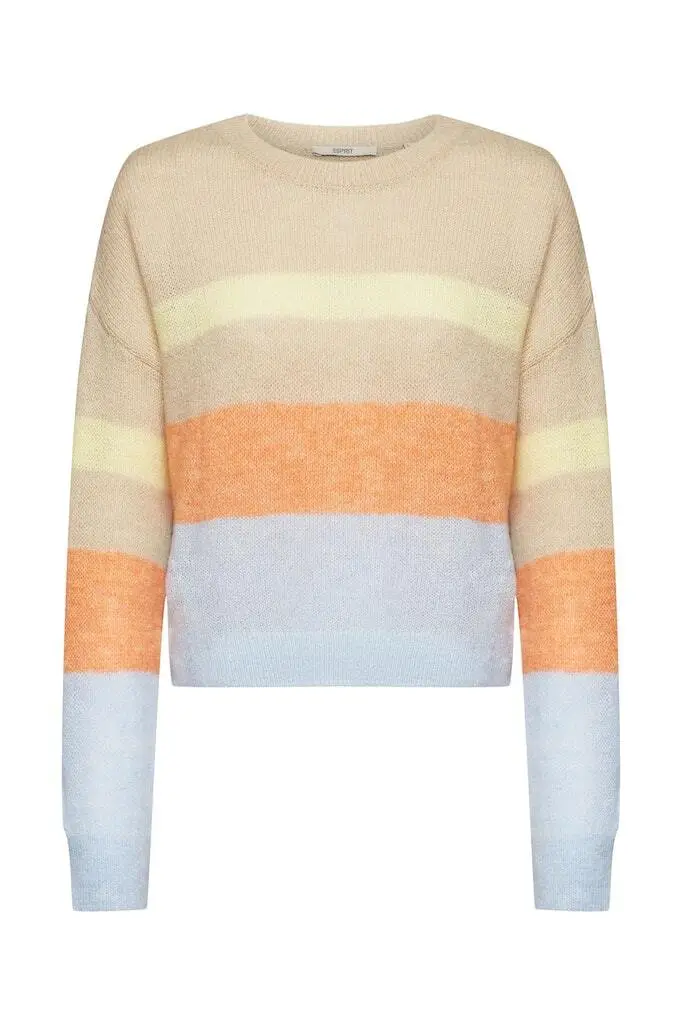 Wollmix Leicht verkuerzte Laenge Markantes Streifenmuster Weiter runder Ausschnitt Überschnittene Schultern