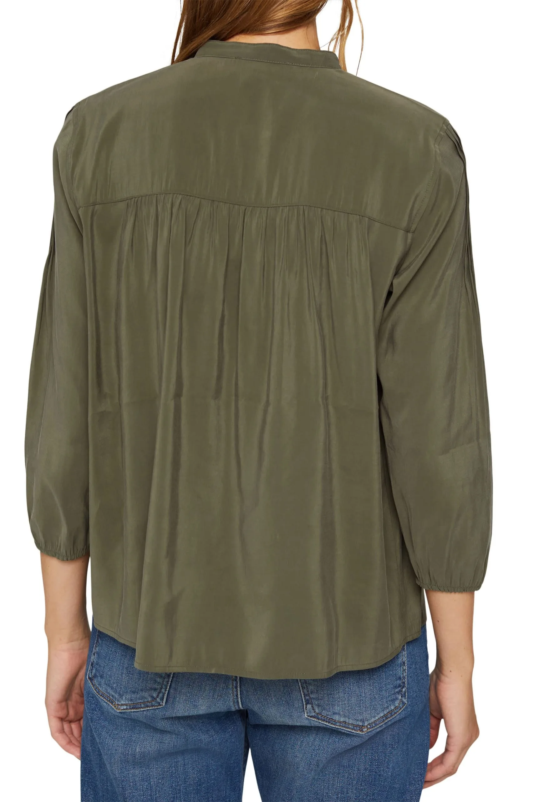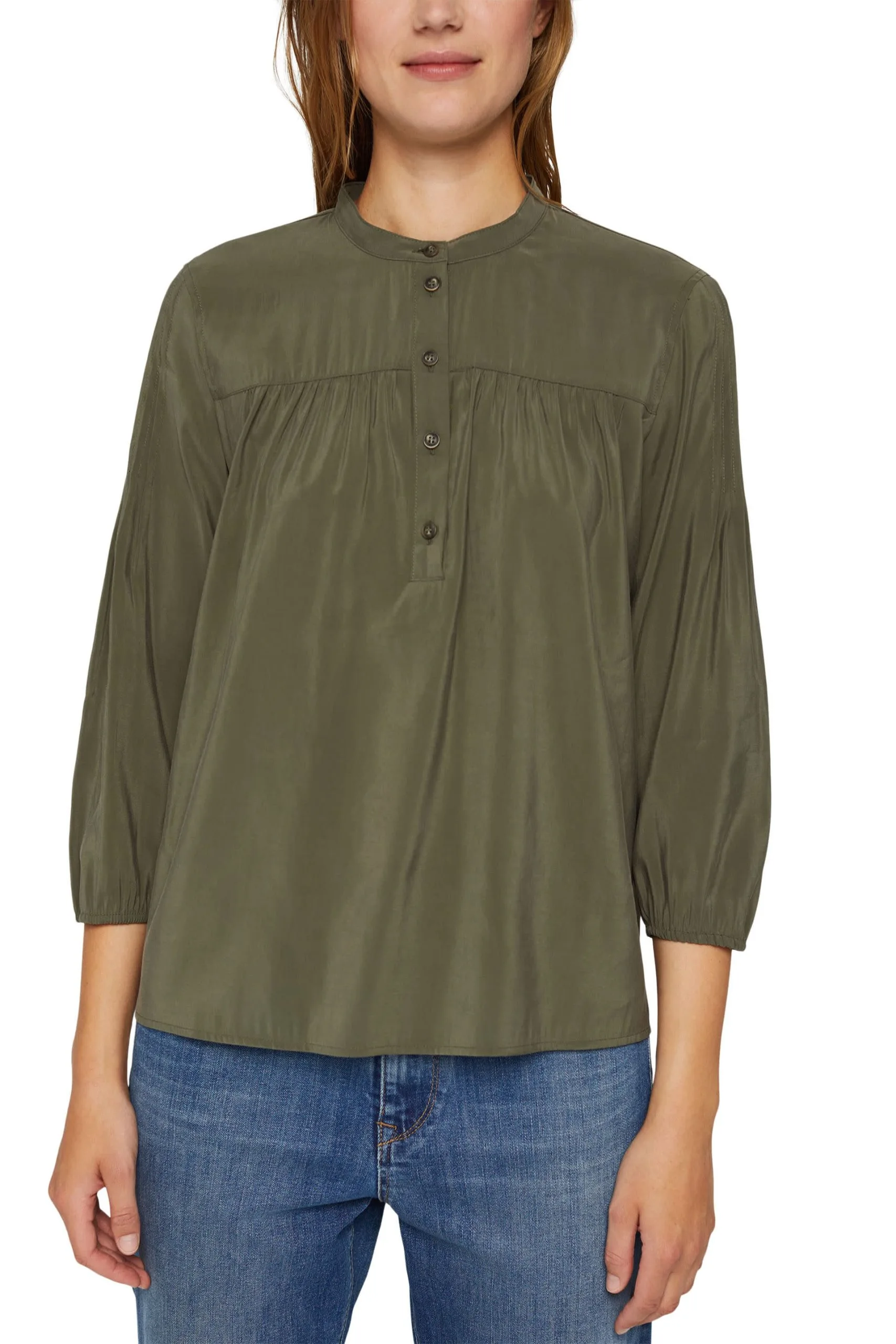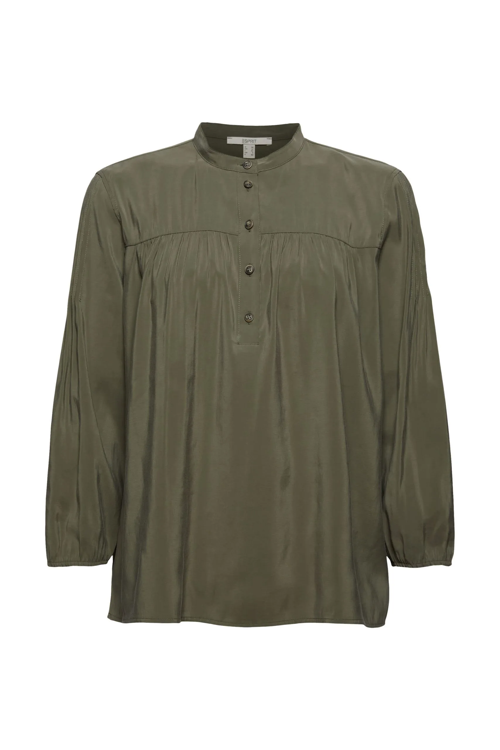 ESPRIT Shiny Henley-Bluse Dark Khaki