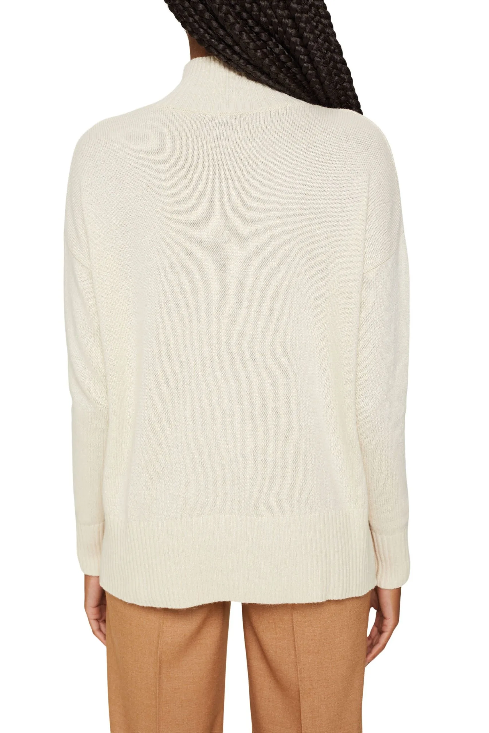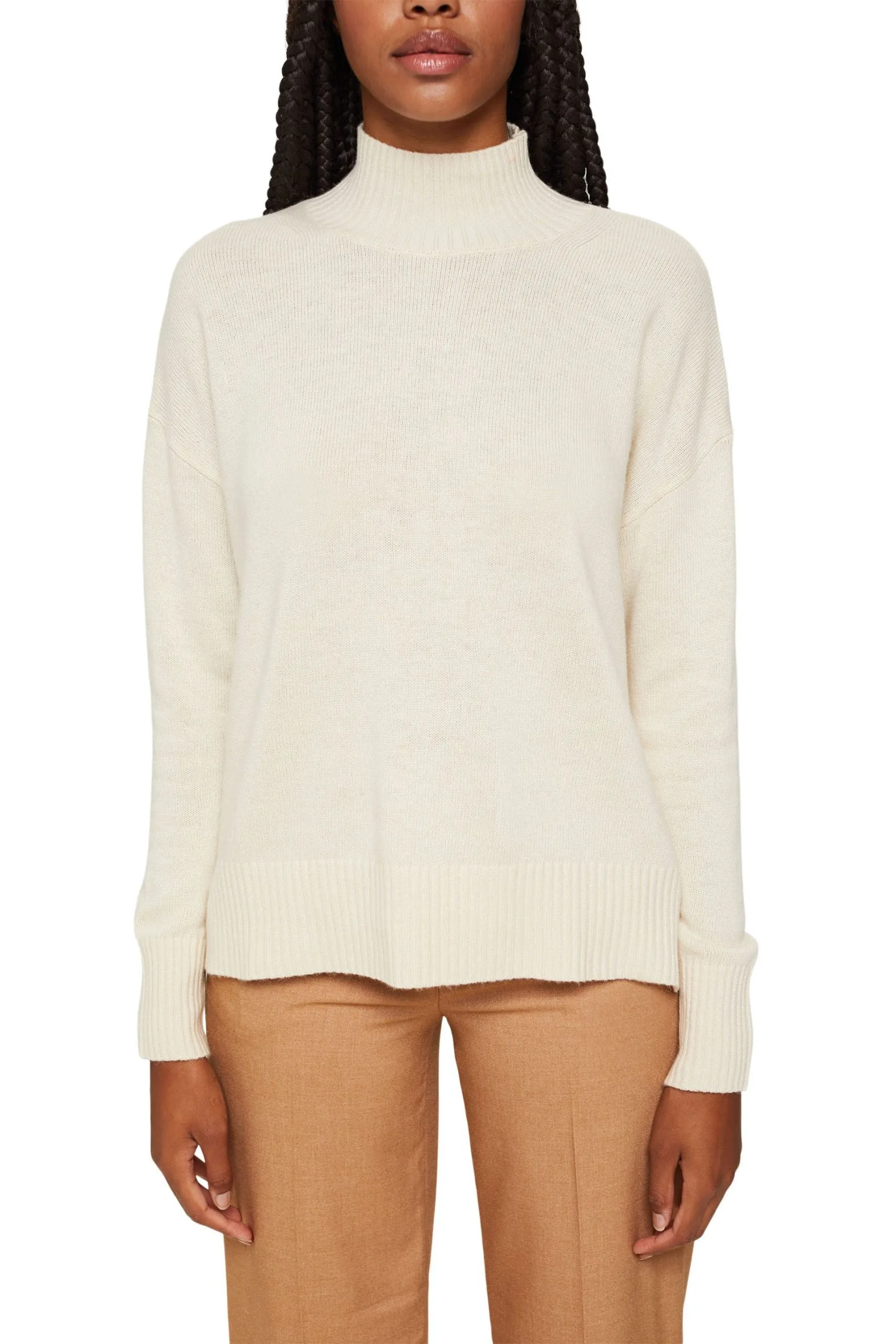 * Besonders weicher Strick aus hochwertigem Garn-Mix mit Wolle, Kaschmir und LENZING™ ECOVERO™ * LENZING™ ECOVERO™: Viskose-Fasern, die aus nachhaltigem Holz und Zellstoff gewonnen werden und aus zertifizierten und kontrollierten Quellen stammen * Gerippter Stehkragen * Drop-Down-Schultern * Rippabschlüsse an Ärmelenden und Saum * High-Low-Saum mit seitlichen Schlitzen * Gerader Schnitt Pflegehinweise: 30°C Feinwäsche/Wollwäsche, Nicht bleichen, Nicht im Wäschetrockner trocknen, Nicht heiß bügeln, Nicht trockenreinigen