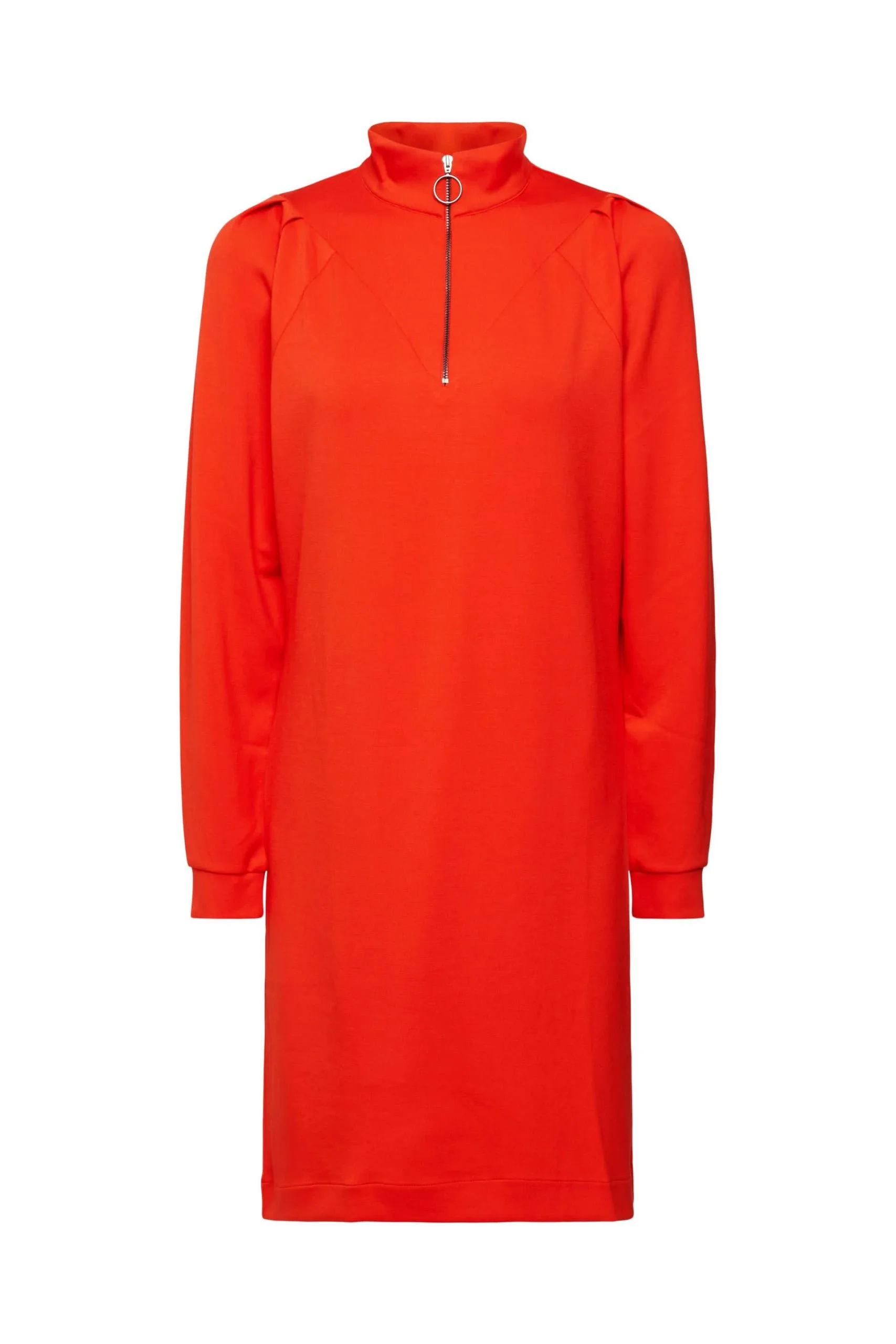 * Weicher Sweat aus Viskosemix * Stehkragen mit kurzem Metall-Zipper * Drapierte Schultern * Midi-Länge Pflegehinweise: 30°C Pflegeleicht, Nicht bleichen, Nicht im Wäschetrockner trocknen, Mäßig heiß bügeln, Nicht trockenreinigen