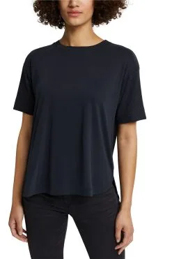 * Vorderseite aus fließendem Jersey mit seidiger Optik und Haptik aus hochwertigem Garnmix mit Modal * Rückseitige aus Jersey in Strick-Optik mit nachhaltiger LENZING™ ECOVERO™ Viskose * LENZING™ ECOVERO™: Viskose-Fasern, die aus nachhaltigem Holz und Zellstoff gewonnen werden und aus zertifizierten und kontrollierten Quellen stammen * Runder Halsausschnitt mit Blende * Überschnittene Schultern mit tiefer angesetzten Ärmeln * Gerundeter Saum * Weiter Schnitt Pflegehinweise: 30°C Pflegeleicht, Nicht bleichen, Nicht im Wäschetrockner trocknen, Mäßig heiß bügeln, Nicht trockenreinigen