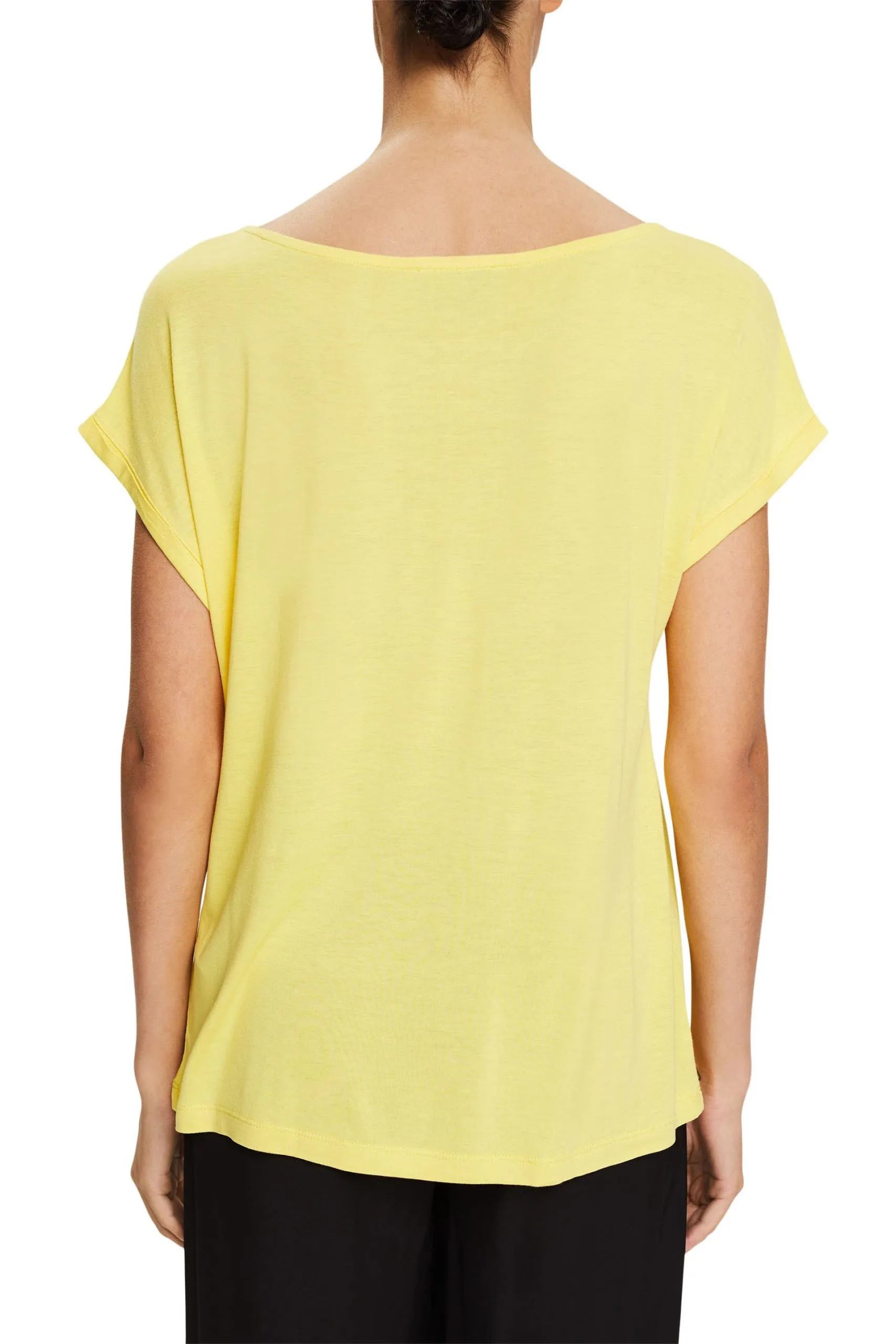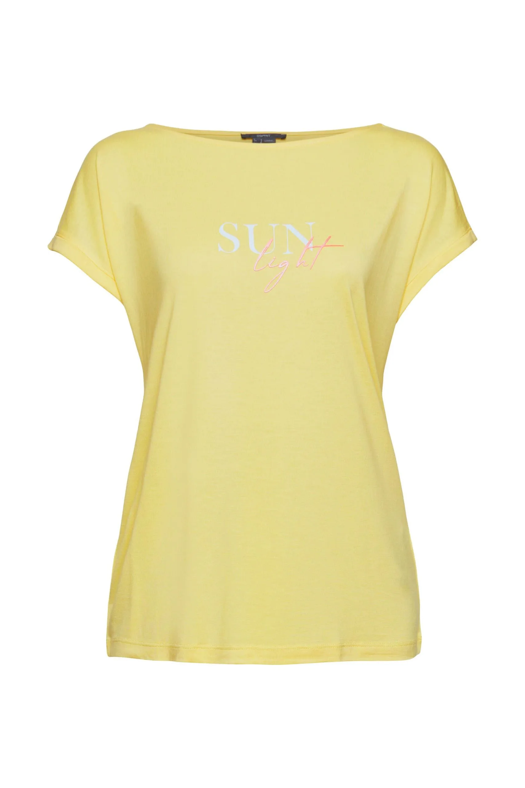 * Weicher JerseyLENZING™ ECOVERO™ * LENZING™ ECOVERO™: Viskose-Fasern, die aus nachhaltigem Holz und Zellstoff gewonnen werden und aus zertifizierten und kontrollierten Quellen stammen * Weiter Rundhalsausschnitt * Fixierter Umschlagsaum an den Ärmelenden * Wording-Print auf der Front * Gerade Passform Pflegehinweise: 30°C Pflegeleicht, Nicht bleichen, Nicht im Wäschetrockner trocknen, Mäßig heiß bügeln, Nicht trockenreinigen