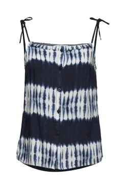 * Leichter Webstoff aus reiner Viskose * Angesagte Batik-Waschung * Schmale Träger zum Binden * Rüschenkante am Ausschnitt * Durchgehende Knopfleiste * Gerade Passform Pflegehinweise: 30°C Pflegeleicht, Nicht bleichen, Nicht im Wäschetrockner trocknen, Mäßig heiß bügeln, Nicht trockenreinigen