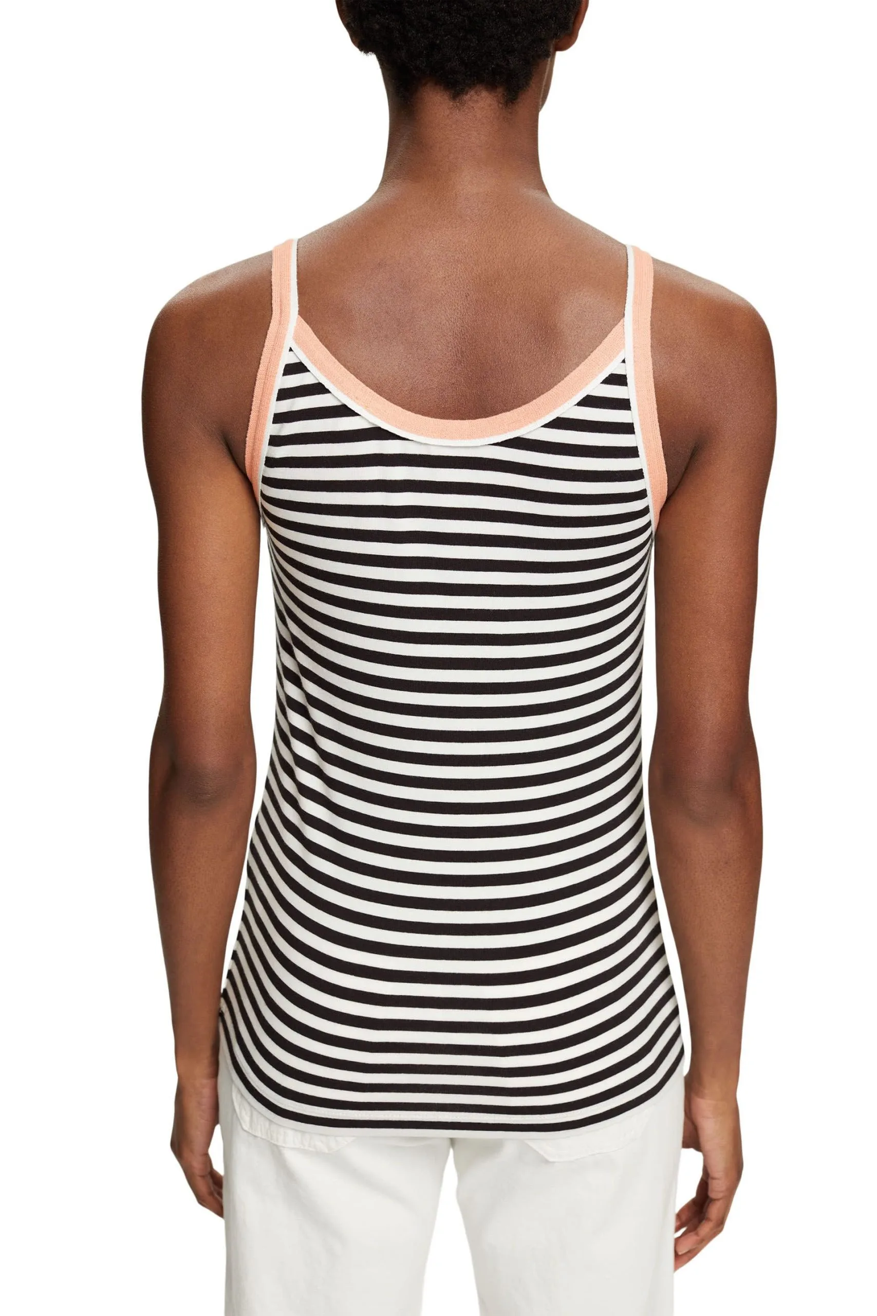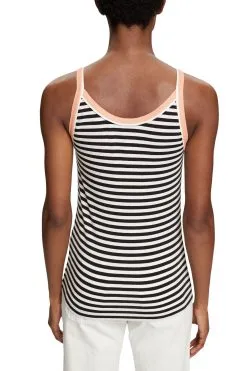 * Weicher JerseyBaumwoll-Mix mit Modal und Stretchkomfort * Streifenoptik * U-Ausschnitt und Träger aus farblich abgesetzten Strickblenden * Kleine Stickerei auf linker Brust * Figurnahe Passform Pflegehinweise: 30°C Pflegeleicht, Nicht bleichen, Nicht im Wäschetrockner trocknen, Mäßig heiß bügeln, Nicht trockenreinigen